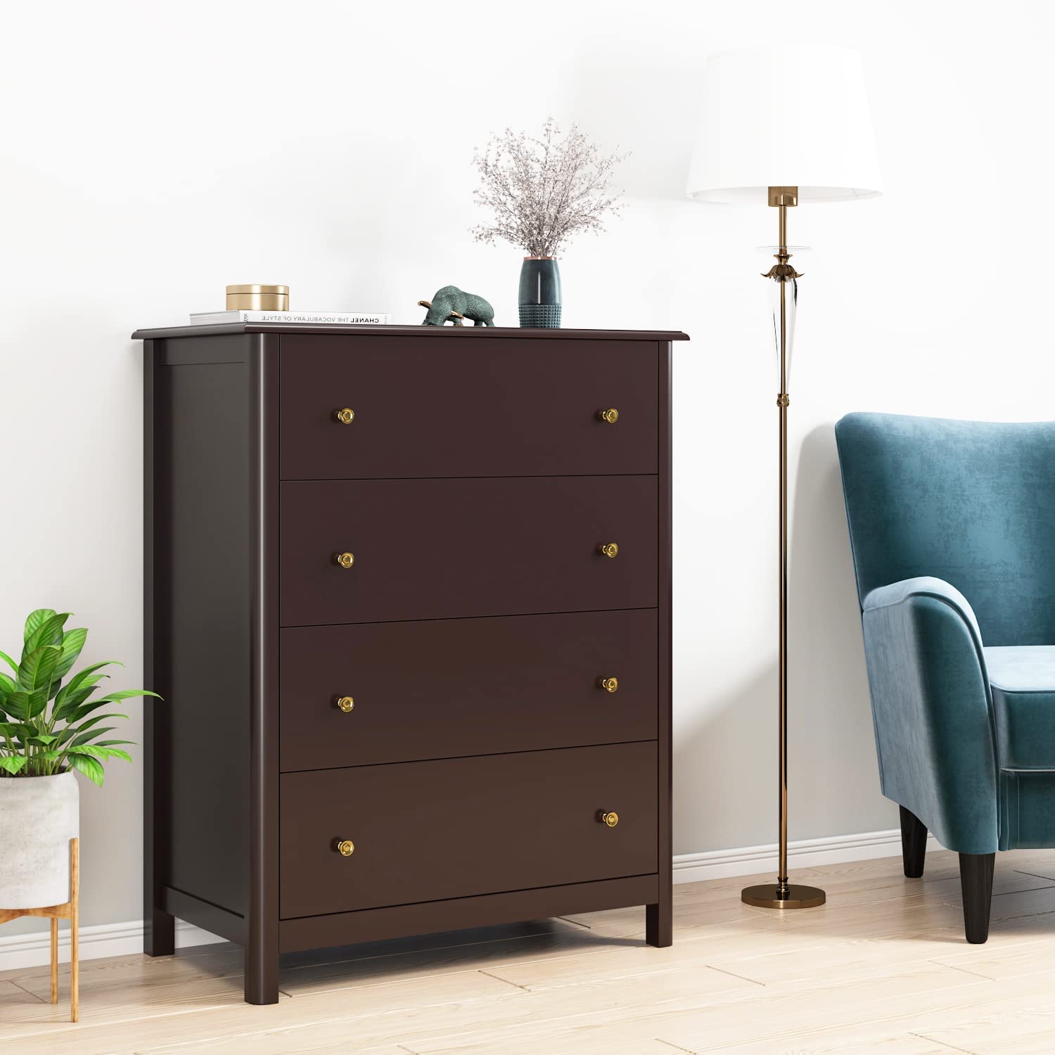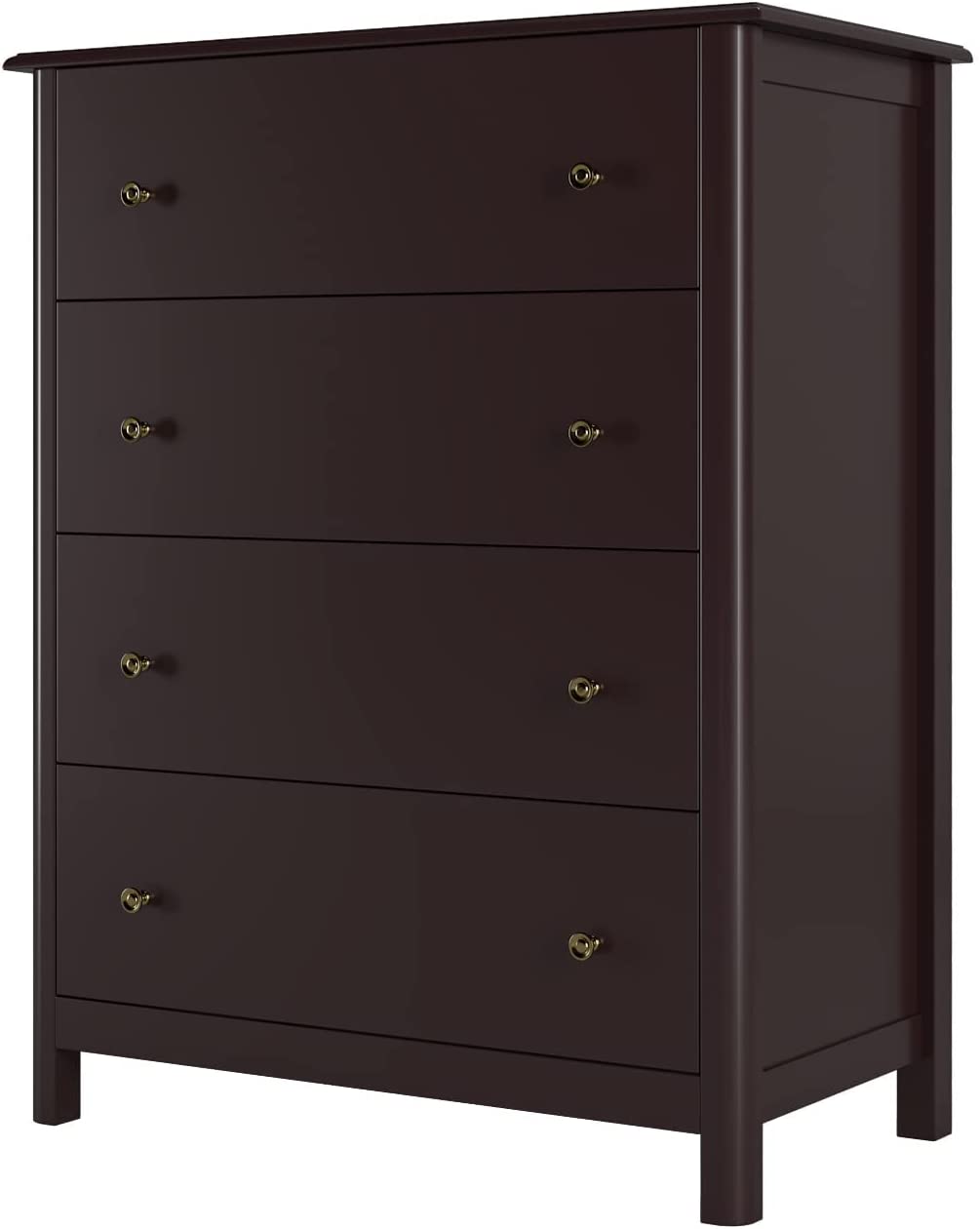 HOUSUIT Drawer Chest, 4 Dresser Chest of Drawers, Clothes Storage Cabinet with Drawers, Modern Dresser for Bedroom, Hallway, Living Room, Nursery, Dark Brown