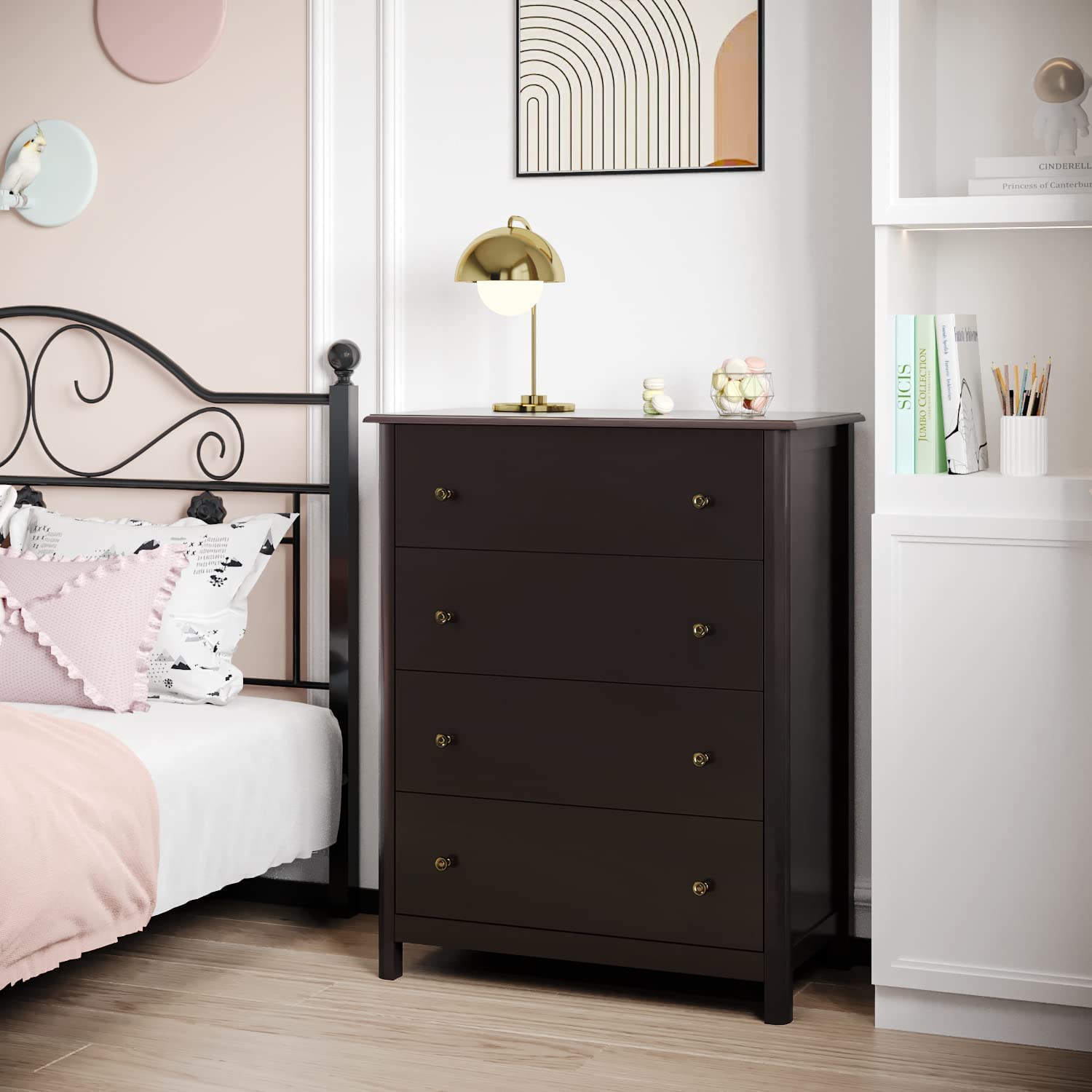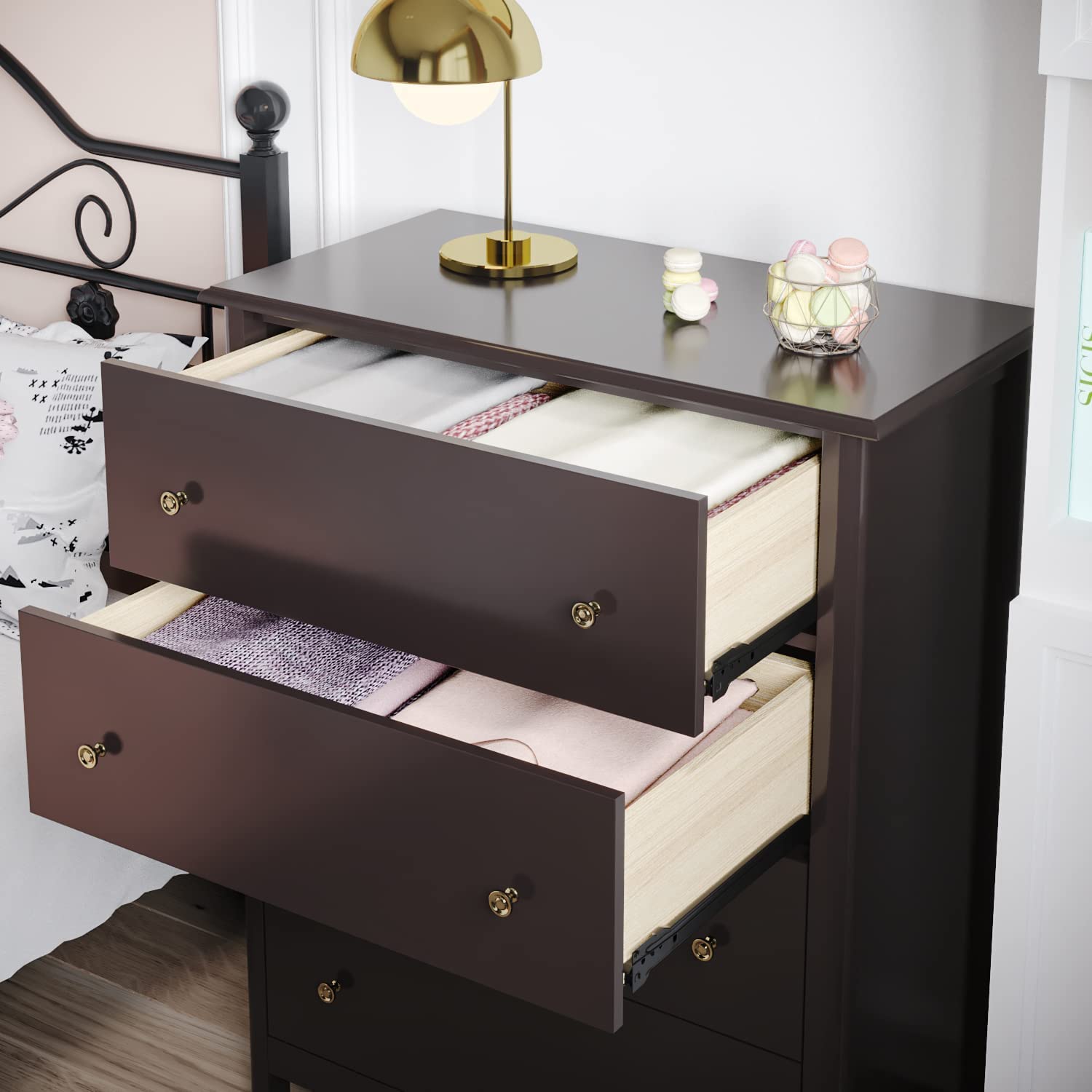 Premium Material: Crafted from high quality MDF, this chest of 4 drawers is sturdy enough to withstand daily use for many years. Alloy handle and metal slides on each layer help drawers run smoothly