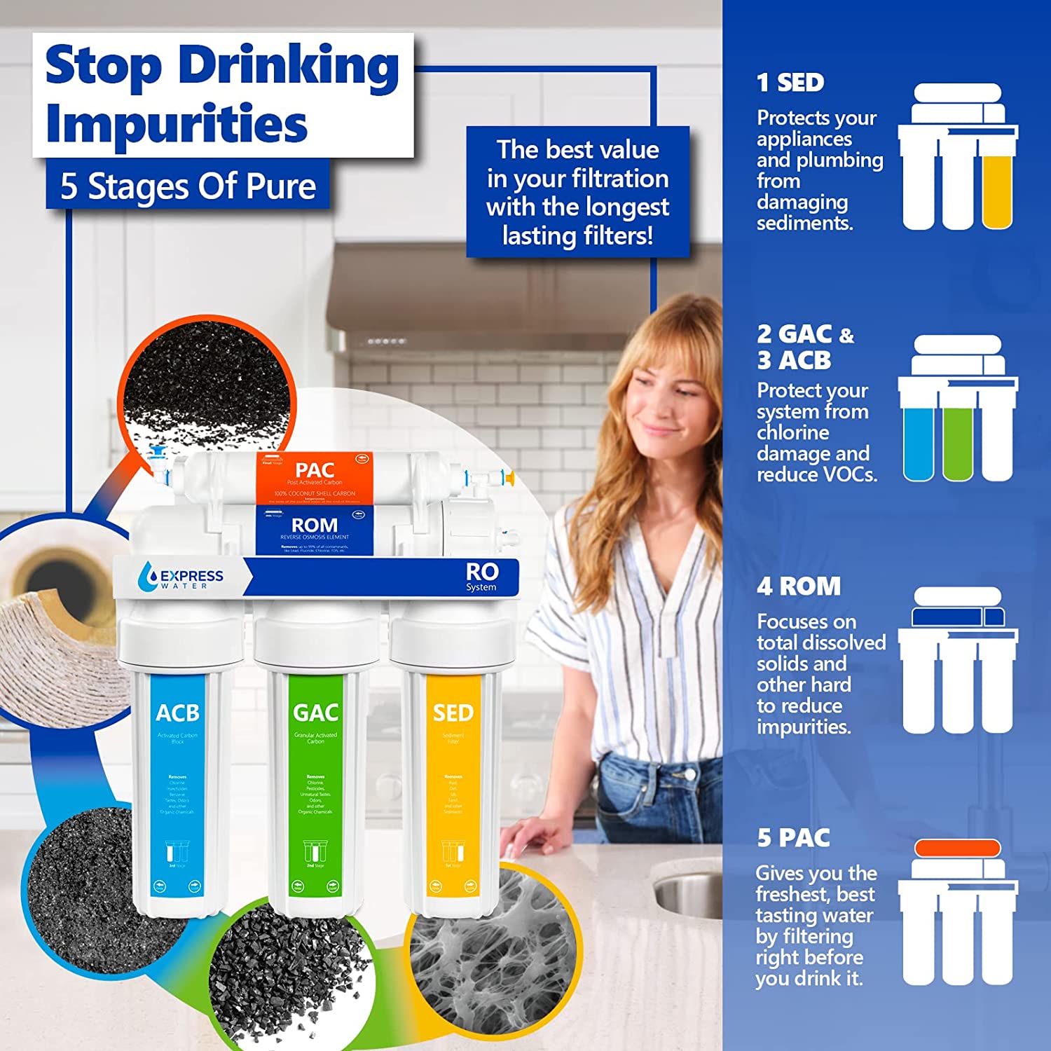• Reverse Osmosis Water Filter: Experience what water should taste like with the Express Water reverse osmosis water filtration system reducing up to 99.99% of Lead, Chlorine, Fluoride, Nitrates, Calcium, Arsenic, and more.