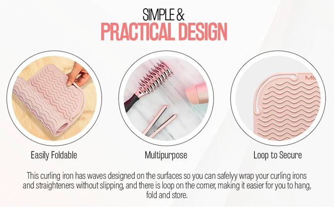 - SURFACE PROTECTION - Silicone mat safeguards any type of delicate surfaces from heat damage of flat irons, curling wands and other hair styling tools. Ideal for home, work, travel, storage, hair salons and hairstylists on the go. No more damage counter-tops and furniture.