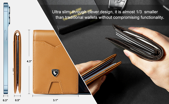 • 【Ultra-thin】:even if it is full of cards and cash, its thickness is only about 0.8 inch. It will fit in your pocket perfectly without bulging out.