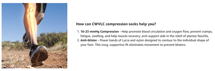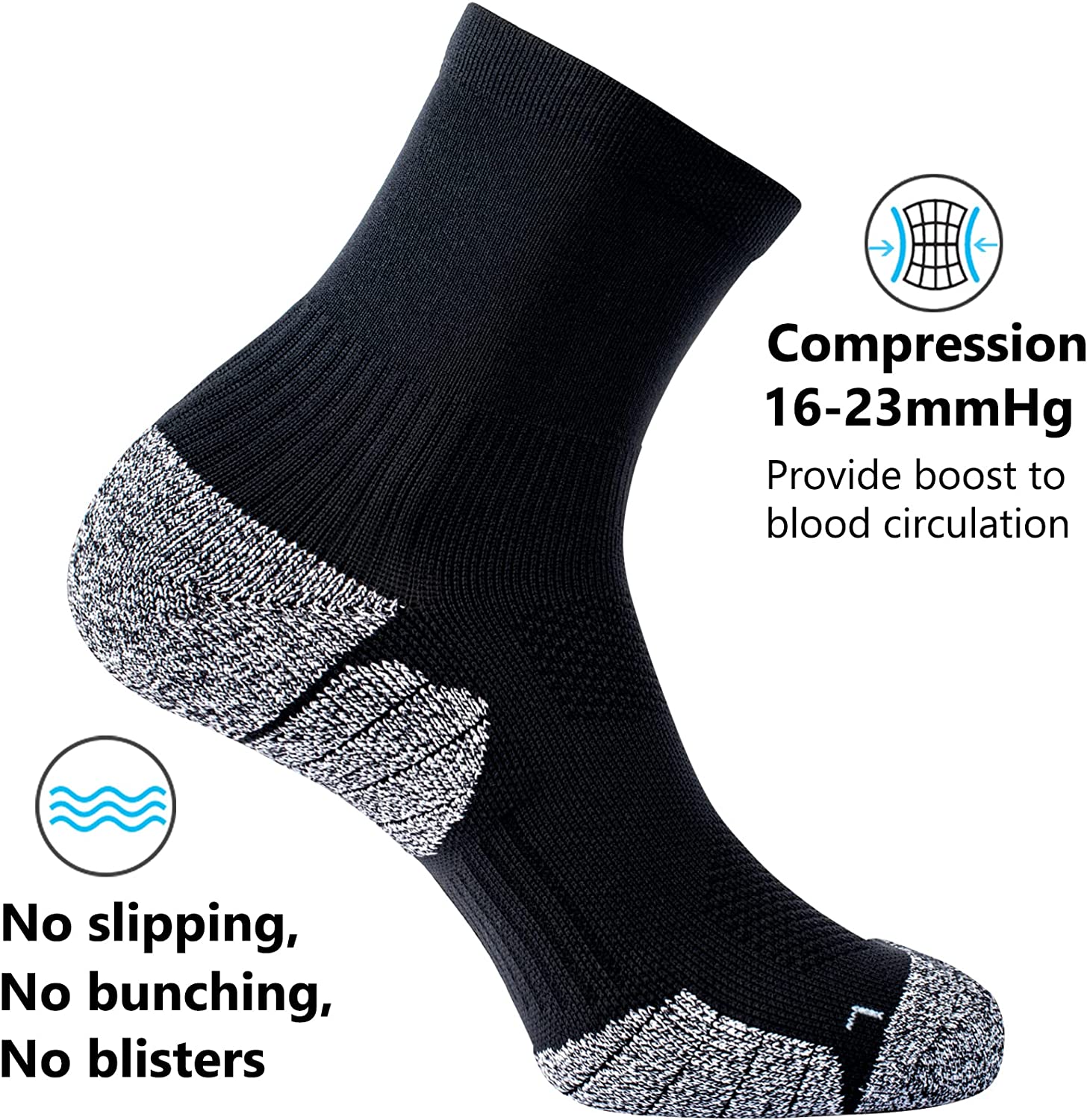 • COMPRESSION FIT: Sport socks with targeted compression (16-23 mmHg) to provide boost to your blood circulation, anti-swelling, arch support, fit your feet perfectly and no slipping, no bunching, no blisters