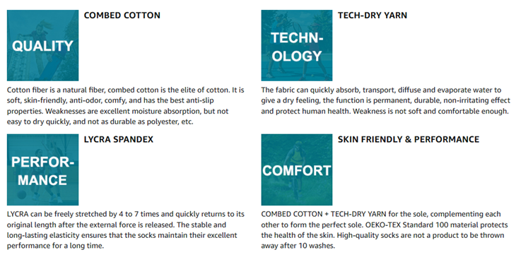 5. About Moisture-Wicking: There is a limit to the moisture wicking ability of socks, and if this limit is reached, drying is required to restore performance. Please feel free to explore and we look forward to hearing from you.