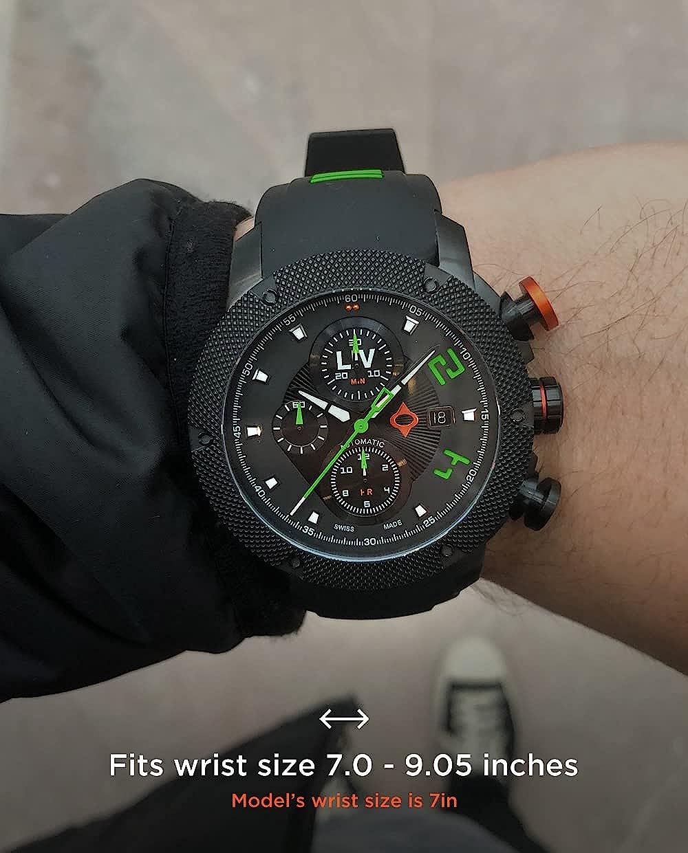 LIV GX-AC Swiss Automatic ETA 7750 26 Jewel Movement Chronograph 46mm 316L Case, 3D Multi-Layer Dial + Quickset Date - Rugged Classic Watch for Men - Skeleton Case-back - Sapphire Crystal - 330 FT Wat