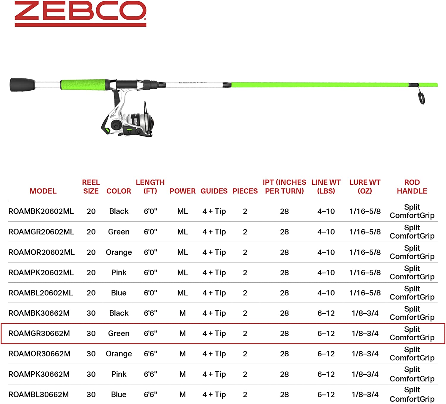 Zebco Roam Spinning Reel and Fishing Rod Combo, Split ComfortGrip Rod Handle, Soft-Touch Handle Knob