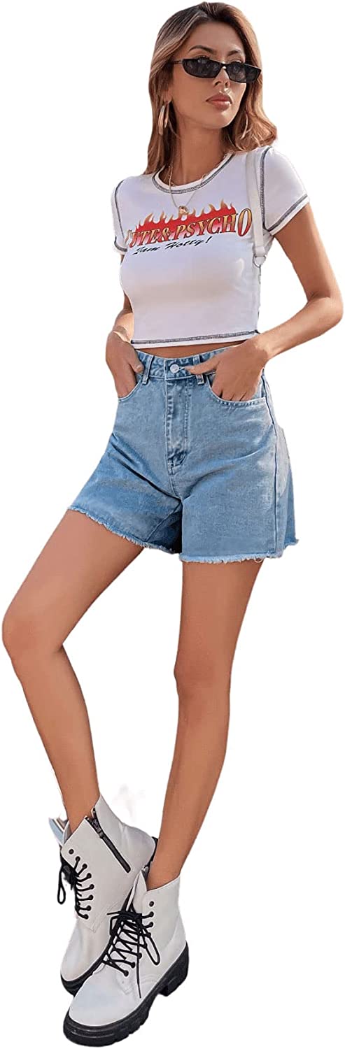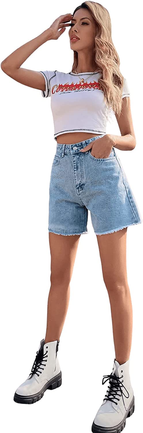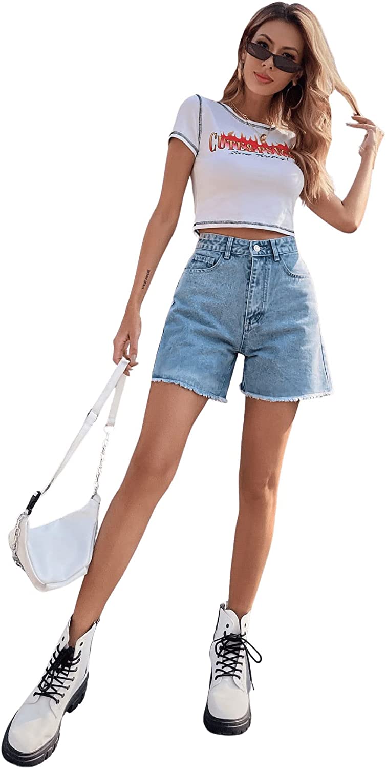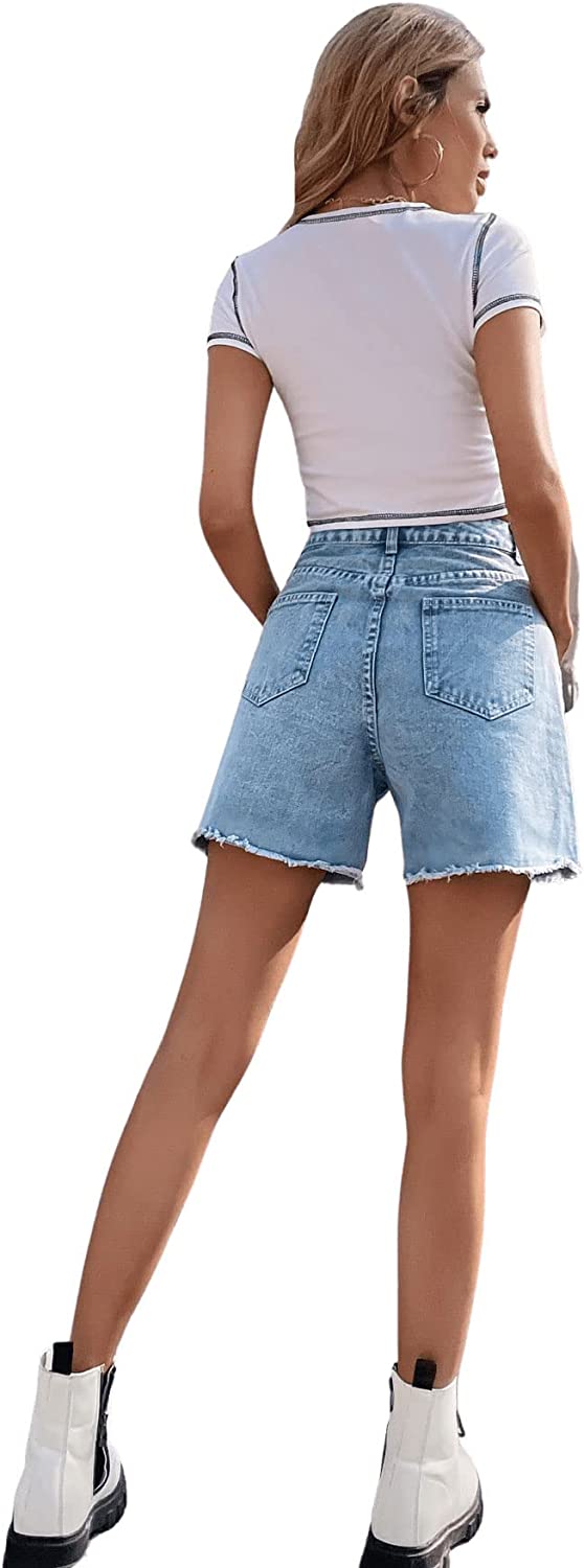 SweatyRocks Women's High Waist Denim Shorts Straight Leg Raw Hem Jean Shorts Summer Hot Pants with Pockets