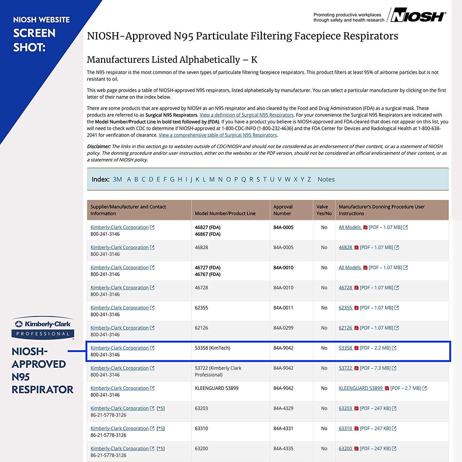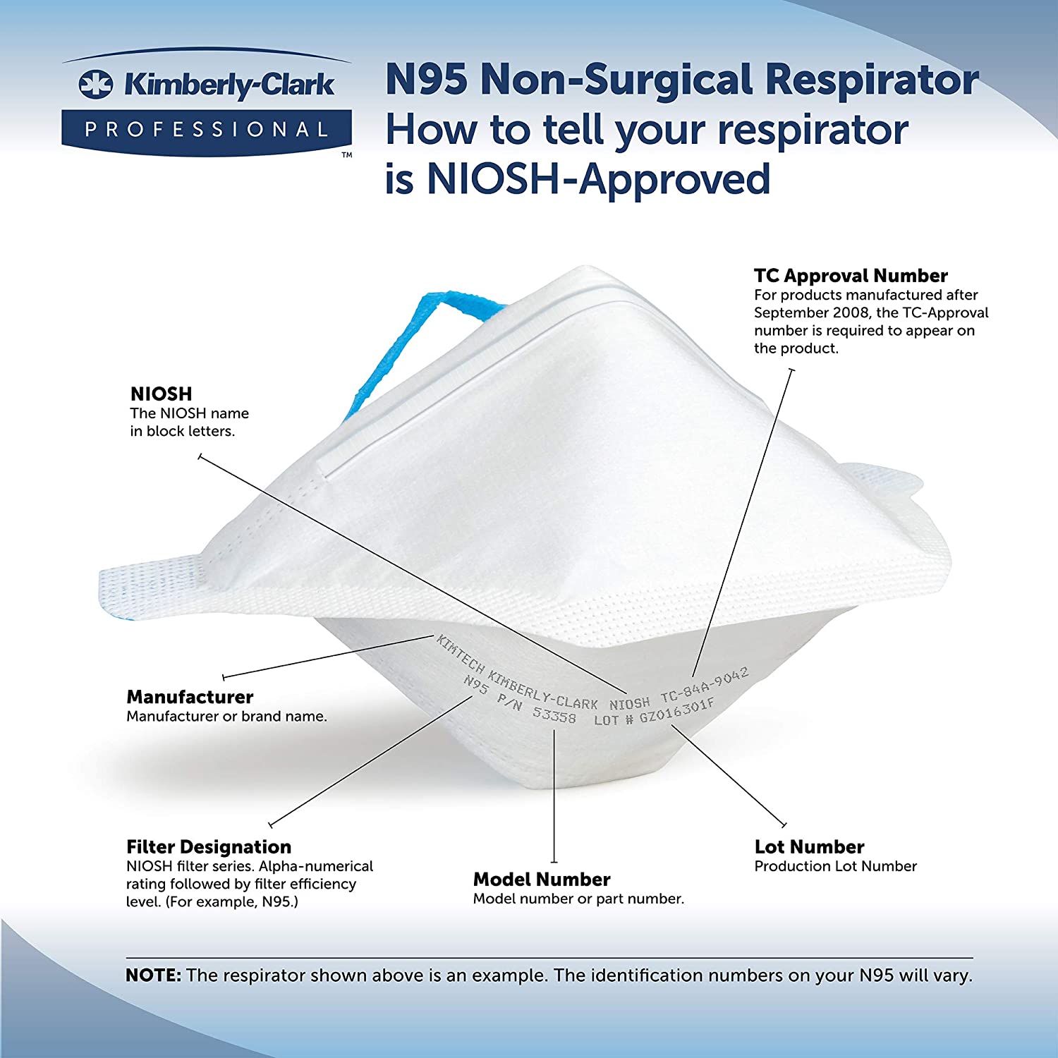 Kimberly-Clark Professional N95 Pouch Respirator (53358), NIOSH-Approved, Made in U.S.A., Regular Size, 50 Respirators/Bag, White