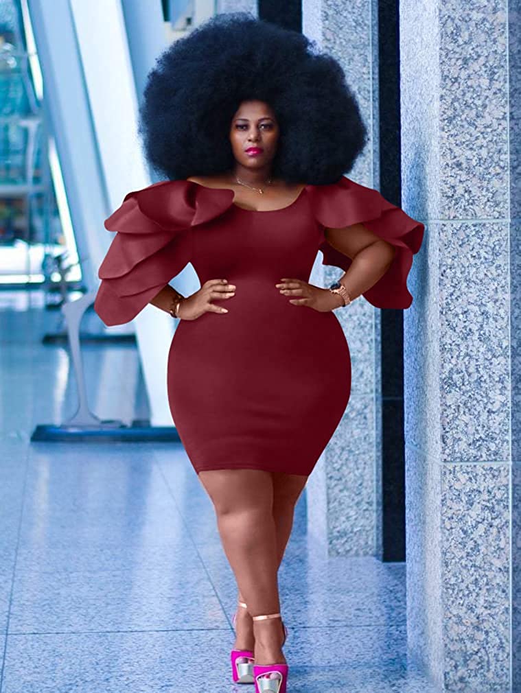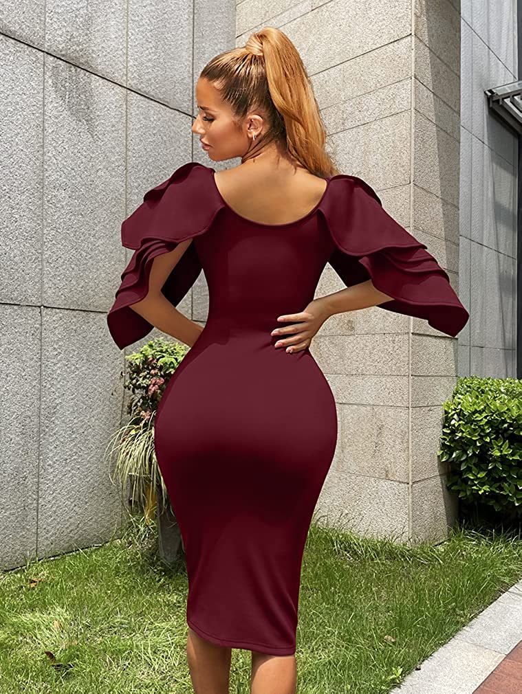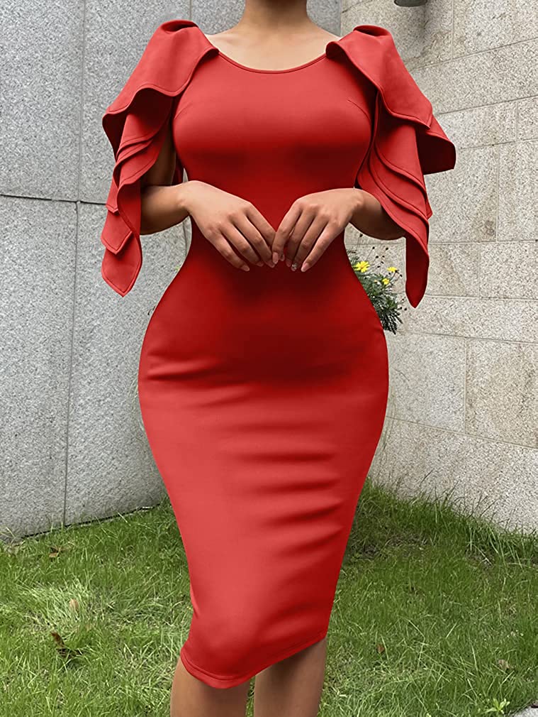 Concealed zipper at side,so it is easy to put on and off .the ruffle sleeves very elegant,and knee-lengh pencil dress as glove wrap you,it is so sexy.