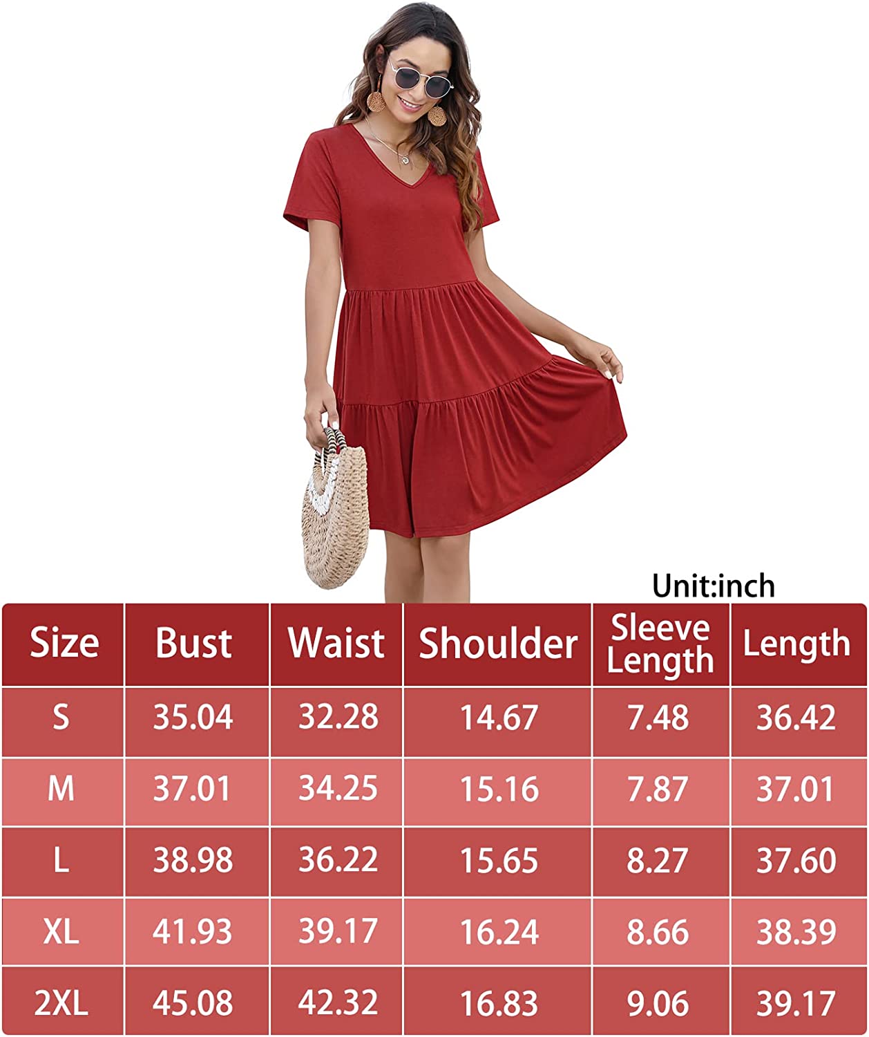 Features: Casual babydoll dress for women is flattering for any female body type. Dresses for women 2022 is looks great on petite and tall women and makes well-proportioned body looks, looks slimmer and taller. Stretchy waistband cinches at the waist, which can hide your tummy perfectly, dresses that hide belly fat, while the belt does not tighten. Feminine v neck mini dress with flowing hem are perfect for curvy women. Flowy pleated womens summer dresses will be your new favorite dress in 2022!