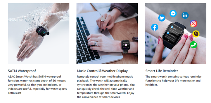 • 【14 Day Battery Life】Large capacity and low power consumption design offers longer endurance. AEAC fitness watch is designed with 5ATM waterproof, you can wear it when washing hands, in the rain and swimming