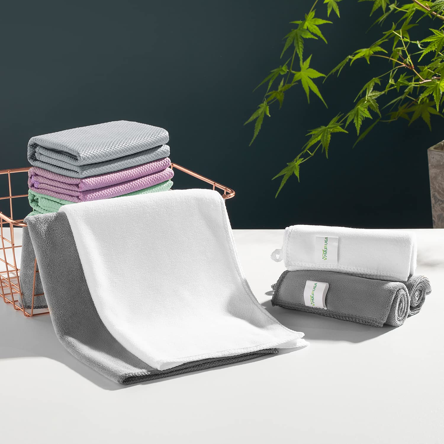 ✓VPMURUGA Easy Clean Microfiber Face Towels- Extra Soft Comfortable and Thick. 400GSM Professional Grade Premium Micro fibre, they are ideal microfiber face cloths for washing face ,erase all makeup with just water.Erase grease,oil and dead skin cells without chemicals,exfoliate the skin. Very effective facial towels .