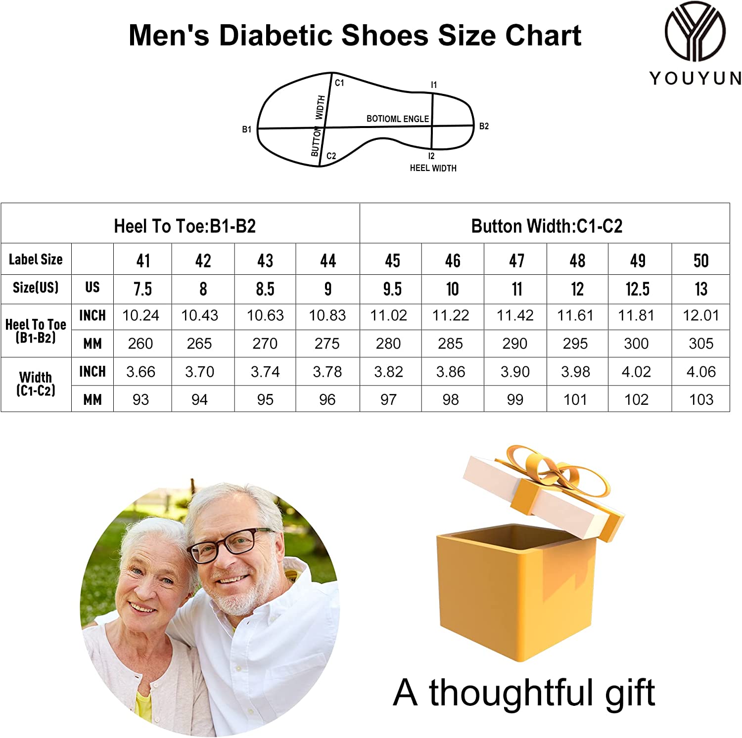 • 【Wide Width & Extra Depth】: Sufficient volume with extended Width designed for the elderly with diabetes. Wide and roomy toe box eases pressure on the toe to offer comfortable fit. Extra depth design makes you easily to put on and off.