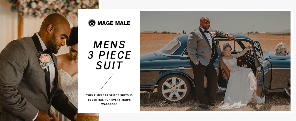MAGE MALE Men's Slim Fit 3 Piece Suit