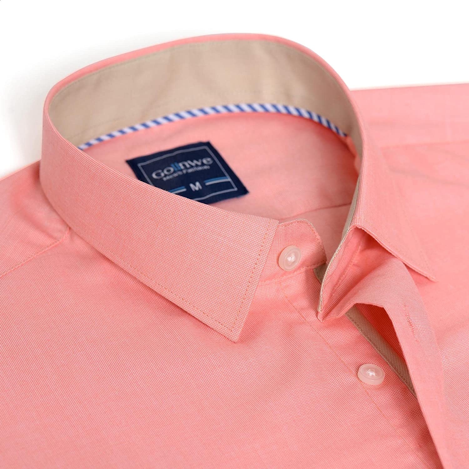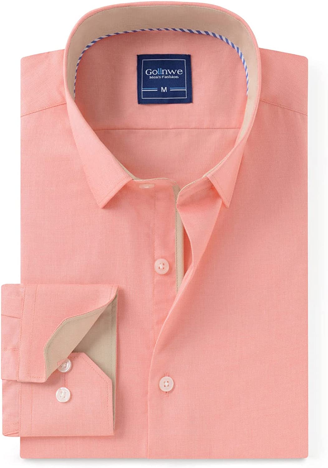Gollnwe Men's Long Sleeve Slim Fit Casual Shirts Contrast Collar and Convertible Cuffs Dress Shirt