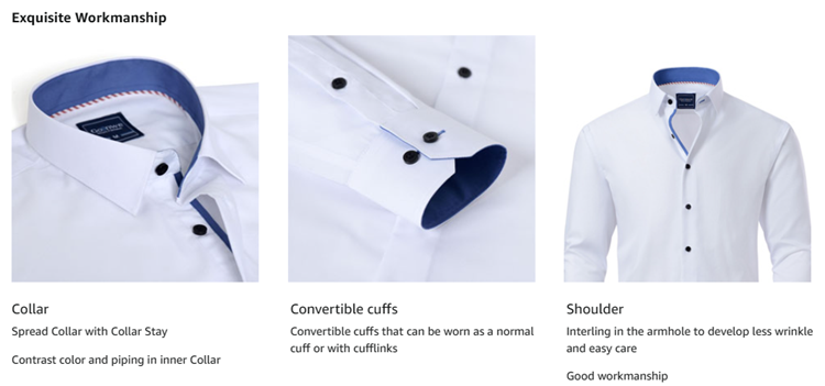 • Convertible cuffs: This dress shirts for men is nicely stitched and detailed. The style is updated with contrast on inner collar, cuffs and placket will hepl you looking sharp. Convertible cuffs that can be worn as a normal cuff or with cuff links. Interlining in front placket and armholes to develop for less wrinkles and easy care.