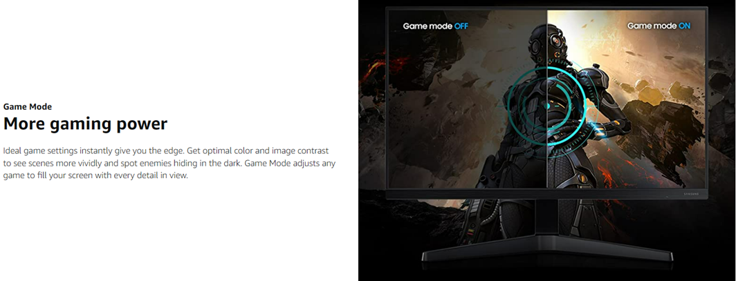 - MORE GAMING POWER: Ideal game settings instantly give you the edge. Get optimal color and image contrast to see scenes more vividly and spot enemies hiding in the dark. Game Mode adjusts any game to fill your screen with every detail in view