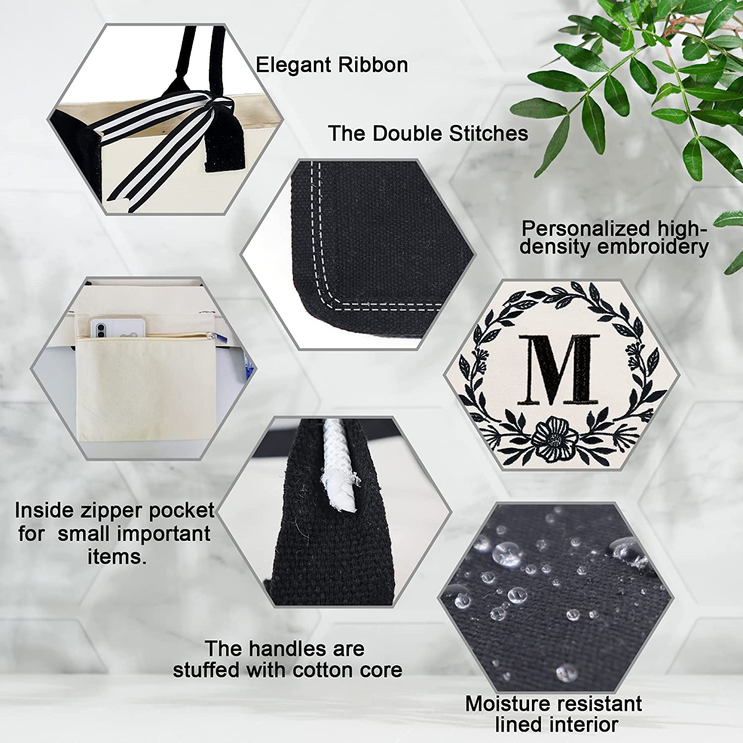 • Classic Monogram Embroidery Font & Personalized Gifts: Each personalized gifts bag is individual using a high thread density monogram in a classic black font. Allowing you to give your gift a personal touch.So the monogram initial canvas tote bag could be as a perfect birthday gift for women,mom,teacher, bride, hostess, mother, friends. Also, the beach bag can be an adorable way to thank your bridesmaids, maid of honor, mother of the bride/groom, guests on wedding day.