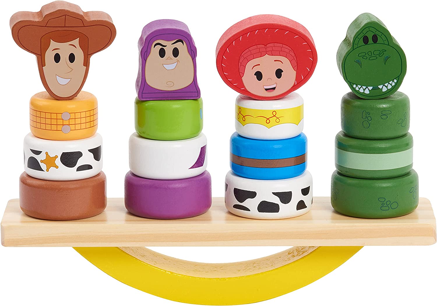 Spark imaginations and hours of creative play with the Toy Story Balance Blocks from Disney Wooden Toys. Featuring some of kids’ favorite Disney characters from Toy Story, this set include 16 building blocks plus balancing base to create each character in their classic look including Woody, Buzz Lightyear, Jessie, and Rex. Kids will love stacking the blocks and using the pedestal to balance all of Andy’s adorable toy friends! These wooden blocks encourage little ones to use their imagination during free play and helps develop fine motor skills. Build out a world of fun when you introduce this classic play experience into your child’s playtime, including wooden figures, blocks, balancing blocks, cars, trains, puzzles, and clutch toys. Collect both Disney Wooden Toys Balancing Blocks including Winnie the Pooh and Toy Story. Ages 18+ months
