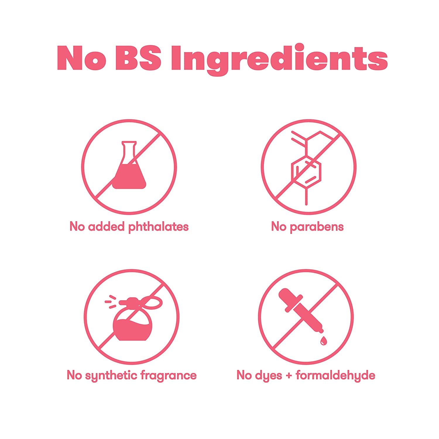 NO BS: Made without phthalates, sulfates, synthetic fragrances, dyes or formaldehyde