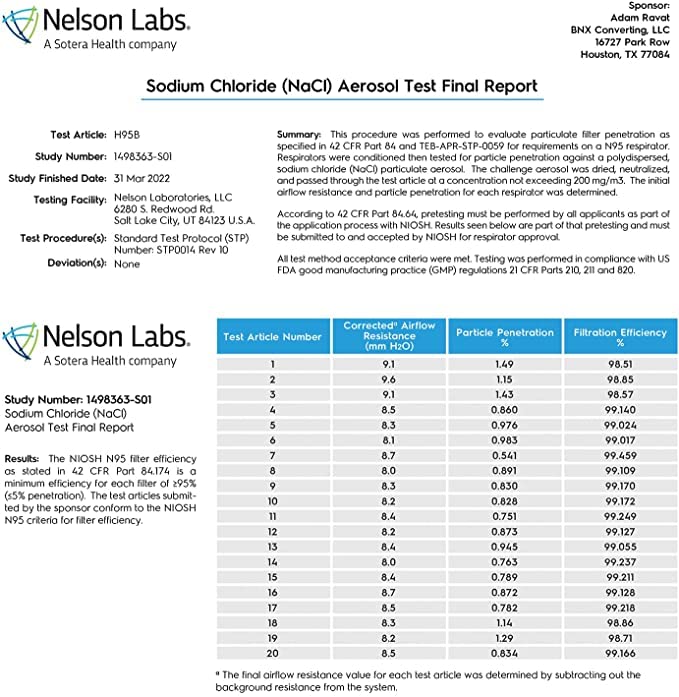 Superior Protection & Breathability - BNX’s 5-layer filtration technology provides maximum protection, comfort and breathability. The active filter layer of these N95 masks is composed of ultra-high grade electrostatically charged meltblown polypropylene. Extremely breathable up to 50%+ more breathable than minimum requirement.