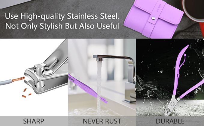 • DURABLE & SHARP: We Have Professional and Mature Craftsmanship. All tools are made of high quality stainless steel, and carefully polished. Extremely sharp, high hardness, and will not rust. Thick toenails and even wires can be easily cut off! Curved blade make the edge of nails smooth and not sharp after trimming