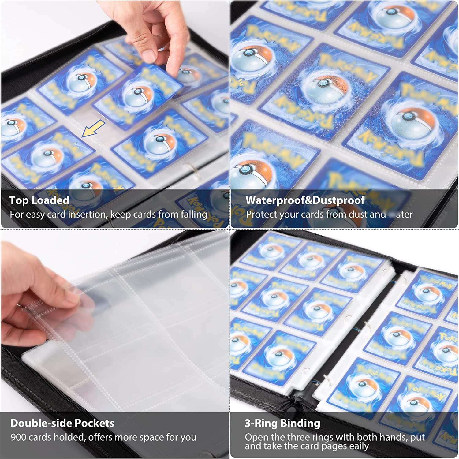 WOT I Trading Card Binder, 900 Pockets Card Binder Sleeves with Zipper, Double Sided Pockets Card Holder Carry Card Case for Baseball Card, Football Card