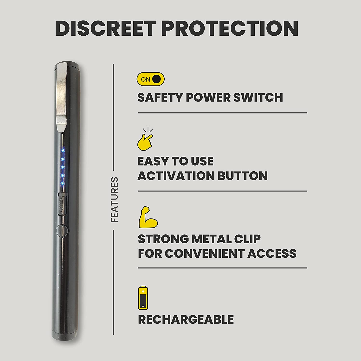 • Patent Pending: There is no other stun gun like this in the world. Its exclusive design and micro technology make it the only model shaped like an actual pen. Perfect for men and women looking for easily hidden tactical self defense products.
