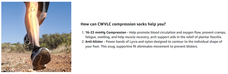 • COMPRESSION FIT: Athletic socks with targeted compression (16-23 mmHg) to improve your circulation, anti-swelling, arch support, hug your feet perfectly and no slipping, no bunching, no blisters
