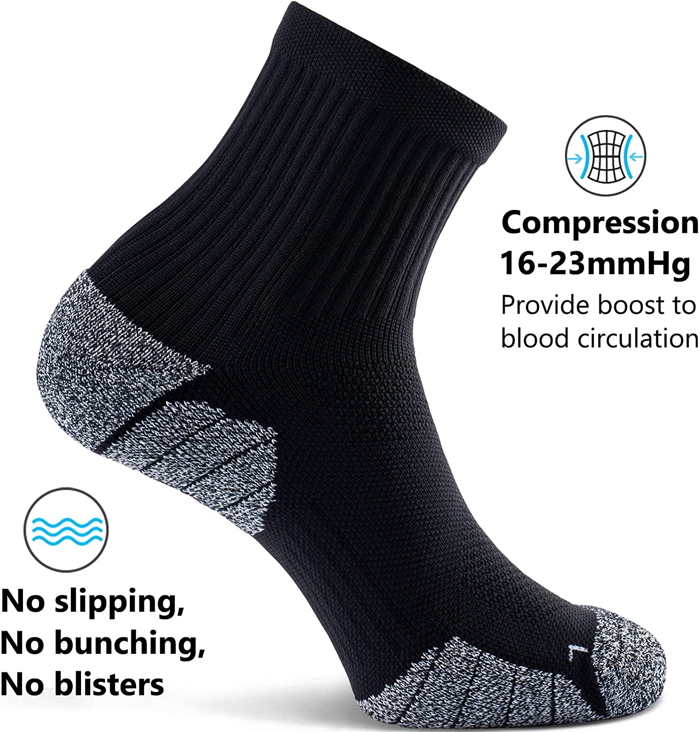 Compression cushioned quarter socks, Perfect for running, hiking, basketball, etc.