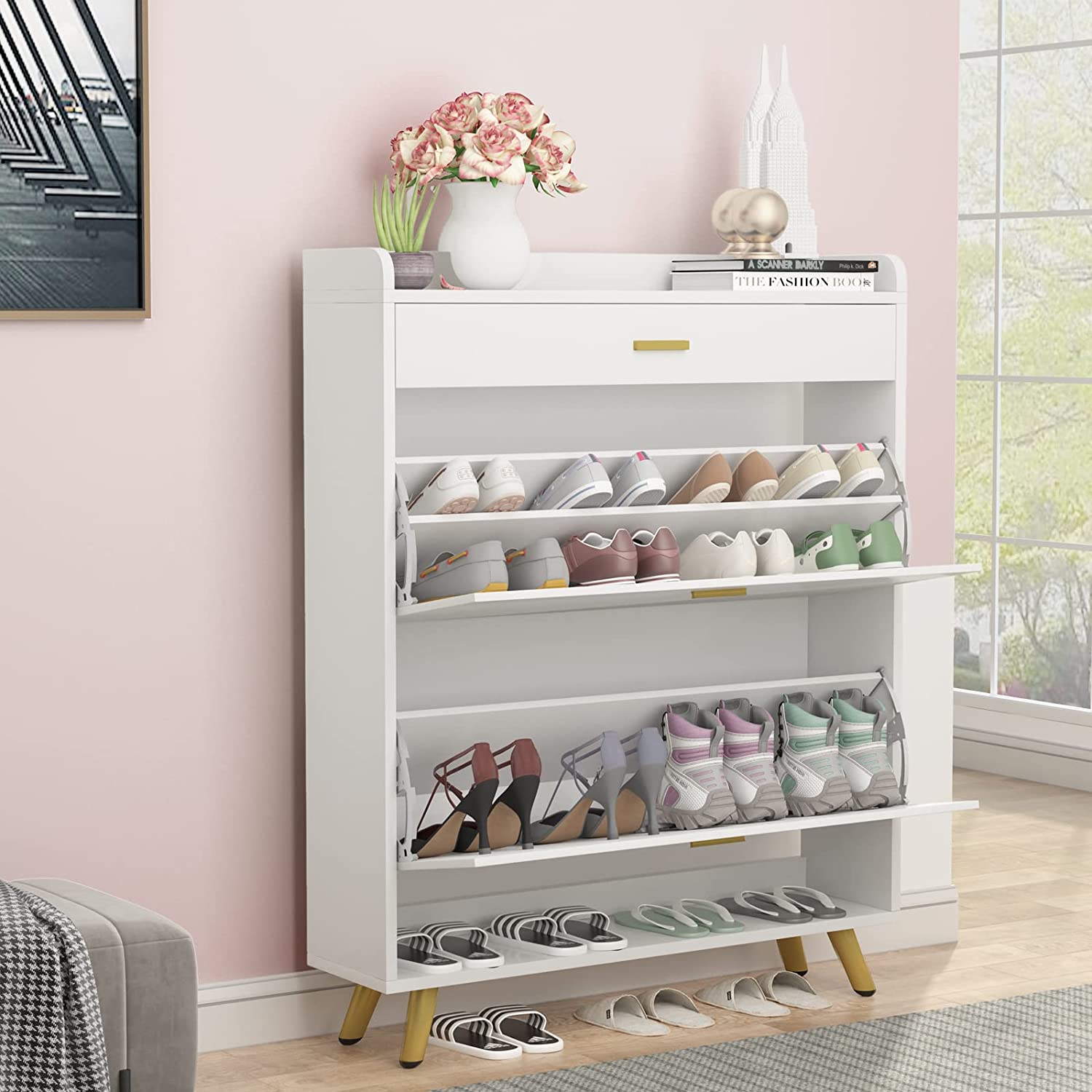 • 【Multi-space Storage】 - The design of the large top shelf/drawer/hidden 4-layer shoe shelf/open bottom shoe storage greatly provides space for storing shoes, toys or handbags.The protruding part of the top frame prevents keys, balls and other objects from falling.