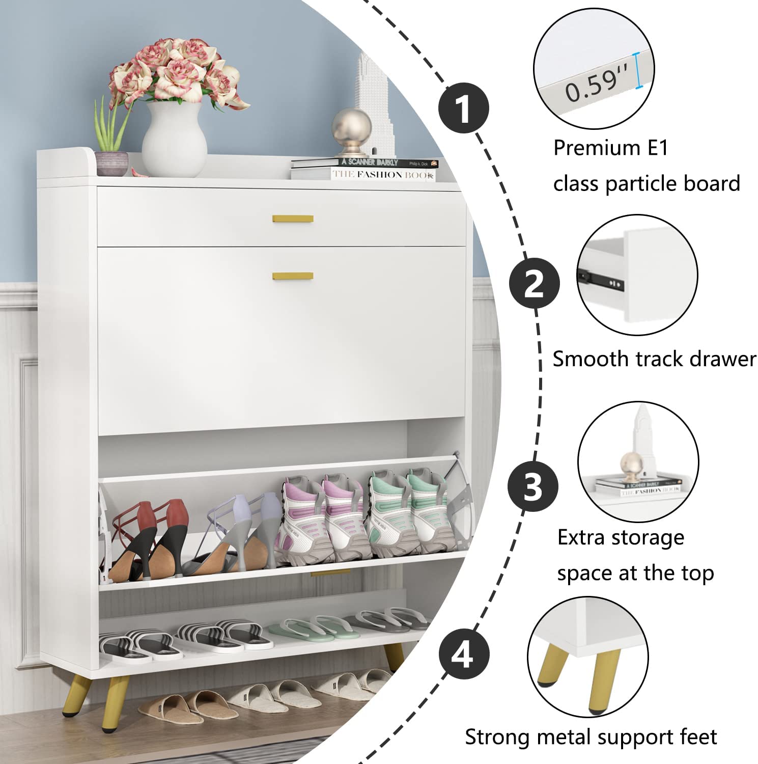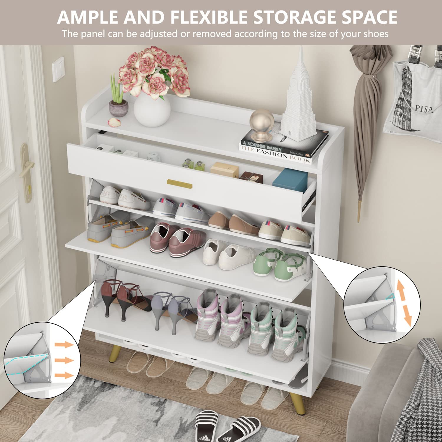 PAKASEPT 5-Tier Shoe Storage Cabinet,18-24 Pair Shoe Rack Organizer with Drawers for Entryway,Bedroom,Hallway,White