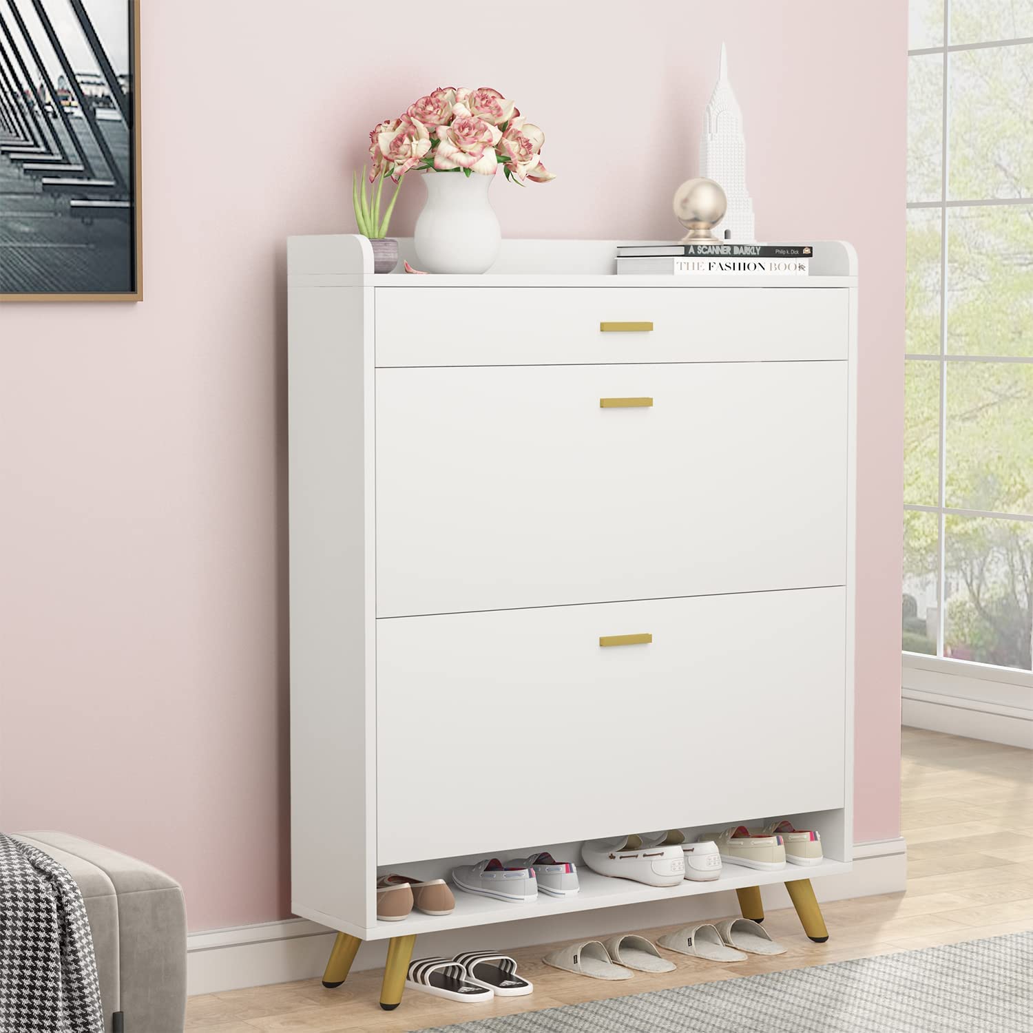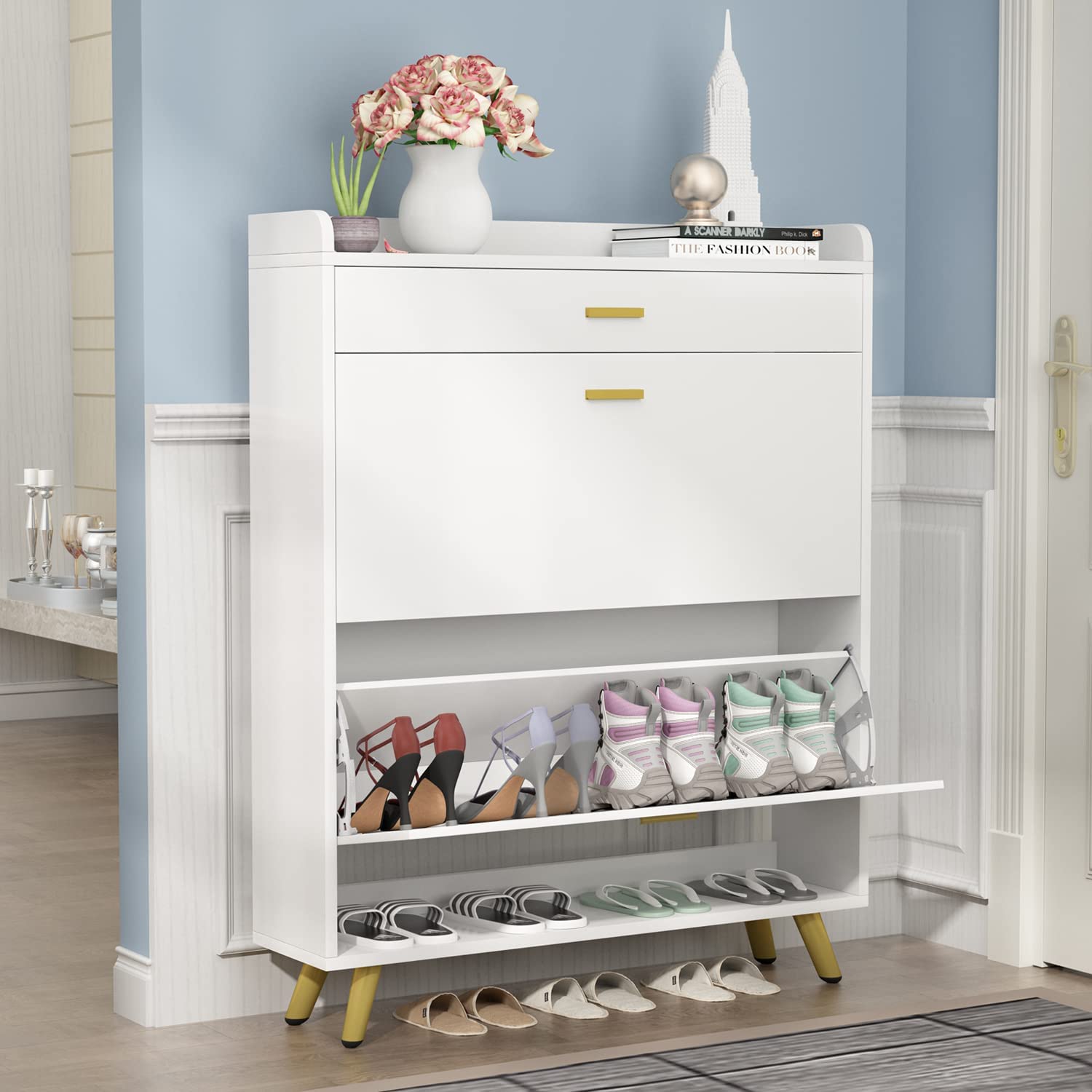 • 【Strong & Sturdy】 - The shoe storage organizer is made of premium quality manufactured wood. Connotation two fold-out parts are made of iron. The whole shoe cabinet is elegant and sturdy, made to last.