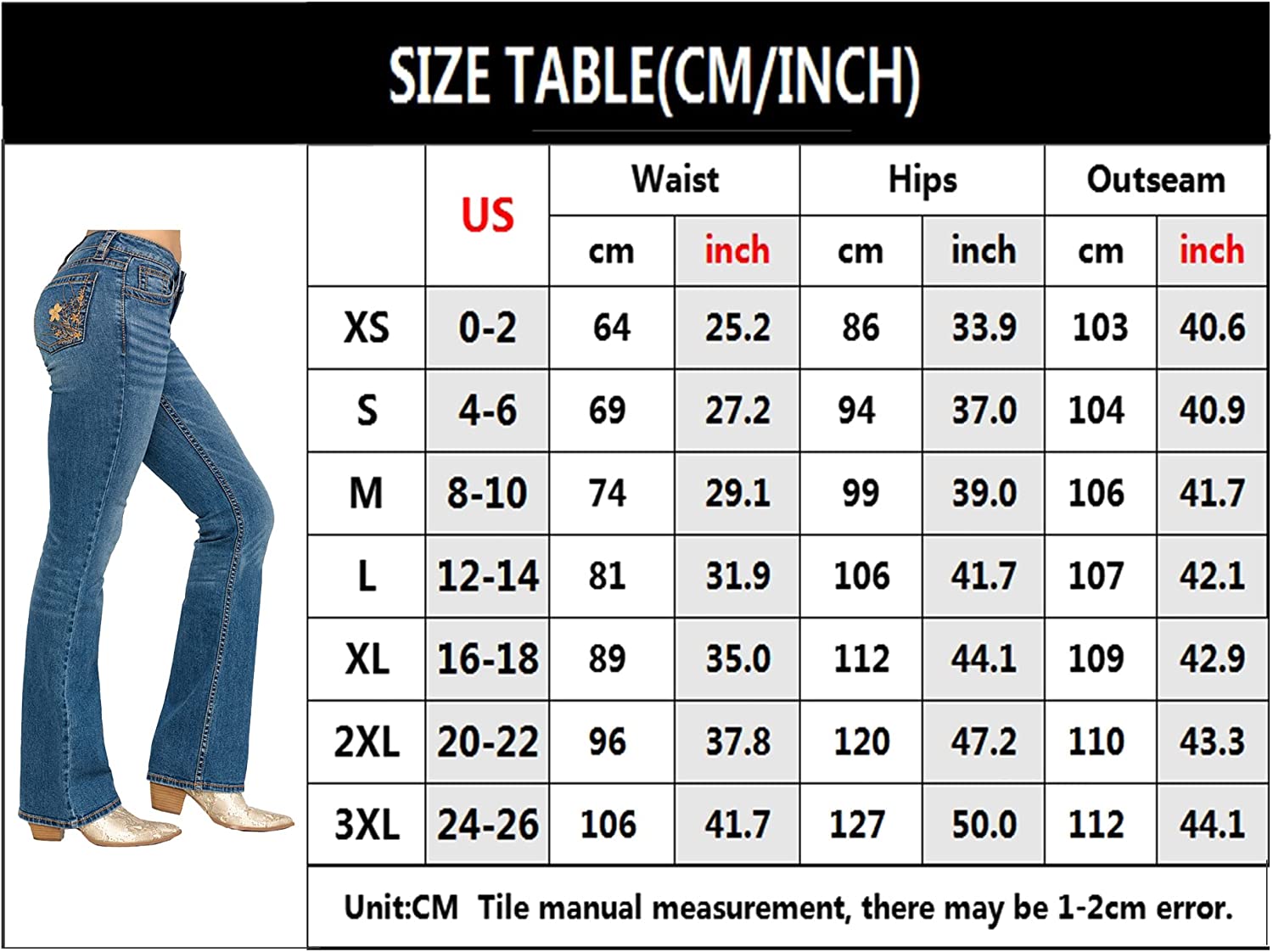 [Features]: Zipper button closure, bootcut jeans, stylish slim jeans with embroidery bell bottom jeans, mid-waist bootcut jeans.