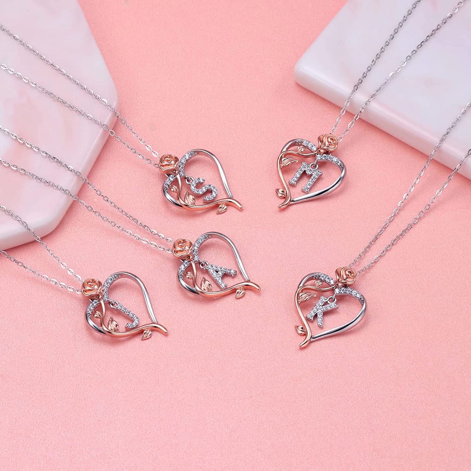 ❤GIFTS FOR YOUR LOVE❤ The rose initial necklace is an unique gift for Mom, Grandma, Sisters, Daughters, Wife, Girlfriend, Friends and other people you love.