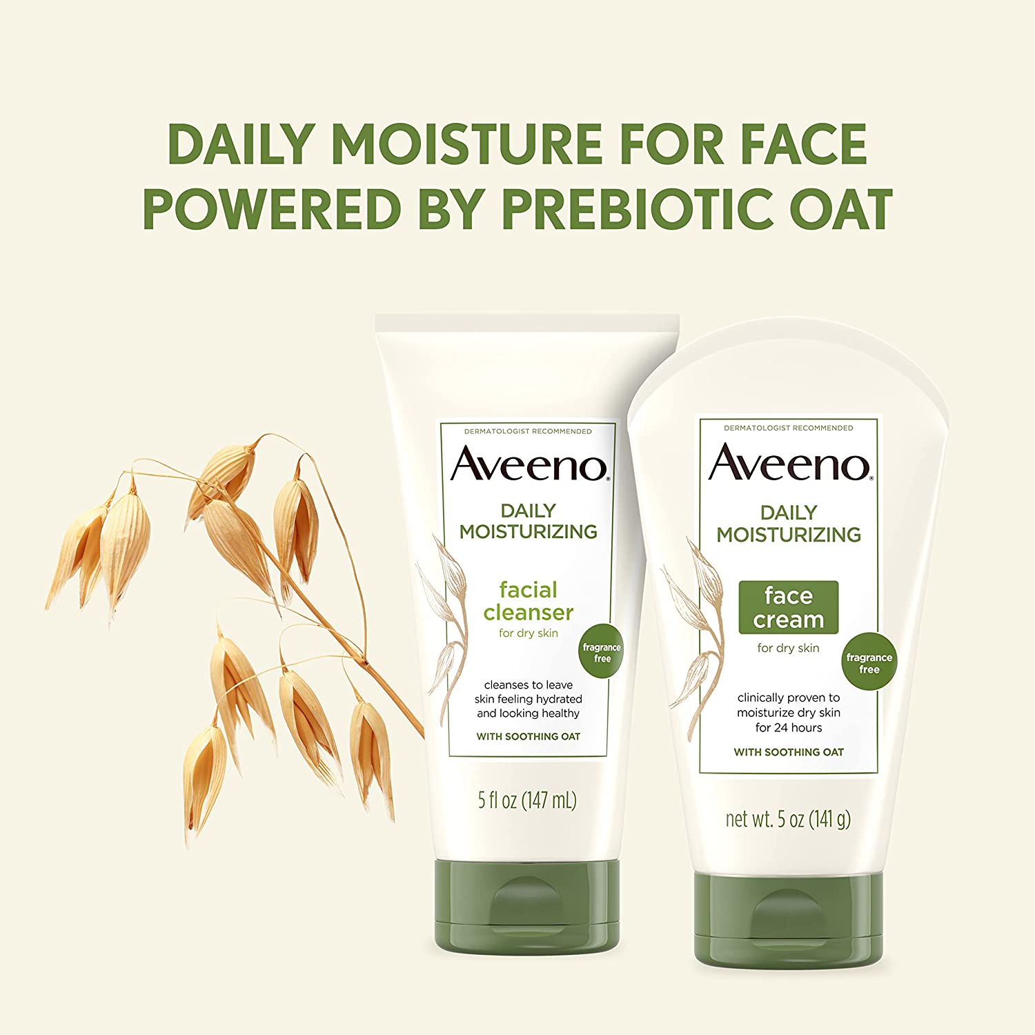 • From a dermatologist-recommended brand, Aveeno Daily Moisturizing Cream with Prebiotic Oat is packaged in a tube made with at least 40% Post-Consumer recycled plastic to care for the planet and is specially formulated for the face
