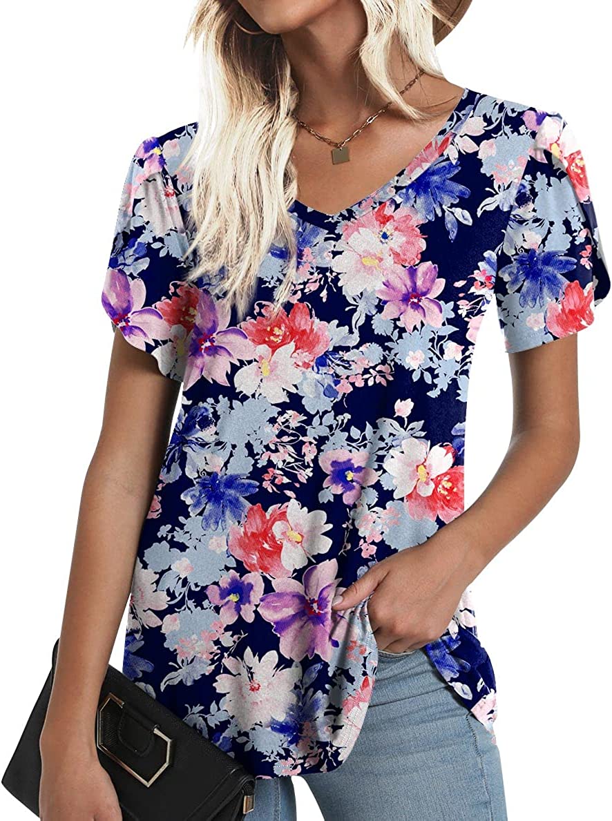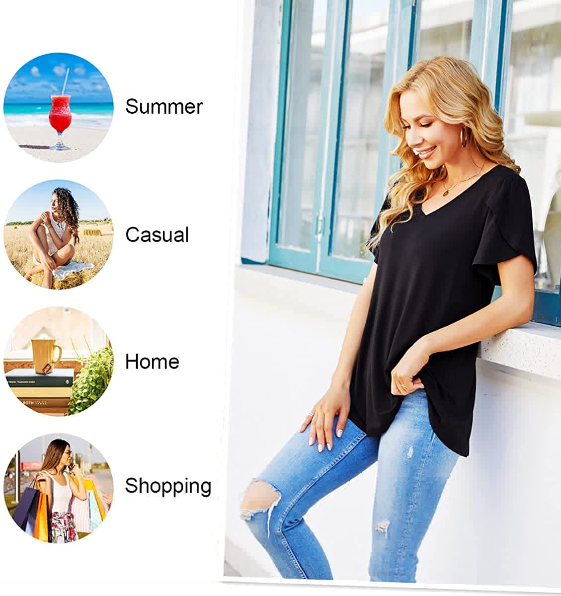 • ❤ 【 Features 】 casual tunic top, v neck tops tee, petal short sleeve tshirts, stretch loose blouse, solid color and print, on the hip length, sexy, plain, trendy and elegant.