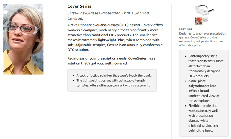 One-piece polycarbonate lens fits over most prescription glasses