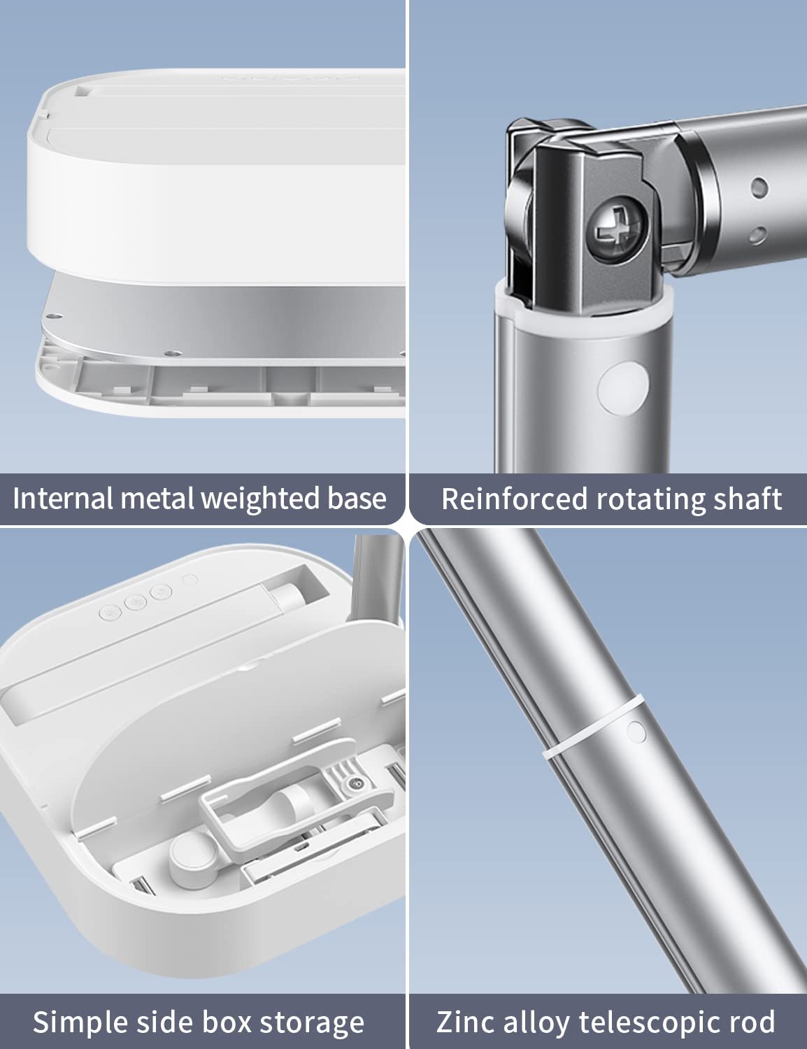 Woumlaiy Selfie Stand with 360° Rotates Phone Holder, Foldable/Rechargeable/Wireless/Overhead Recording with 3600mah Battery for Live Stream/Make up/Tiktok/Vlog, 15 Brightness LED Light