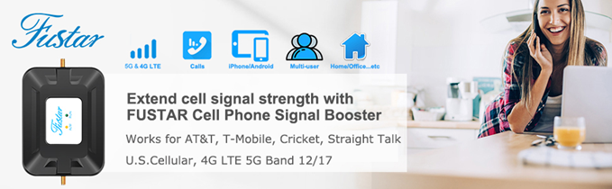 FUSTAR Cell Phone Signal Boosters for Home 4G 5G AT&T, T Mobile, U.S Cellular, Cricket, Straight Talk Band 12/17 BLACK
