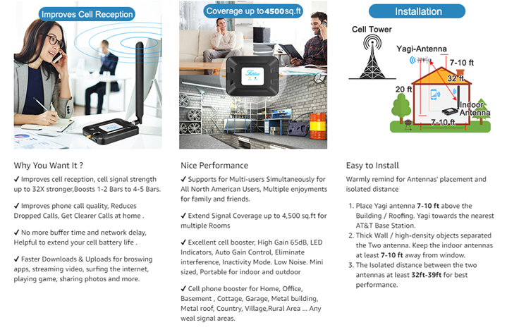 The cell phone booster at&t signal booster works for All North American Users. The att cell phone antenna booster kit can solve the cellular Poor Cell Reception Problem.