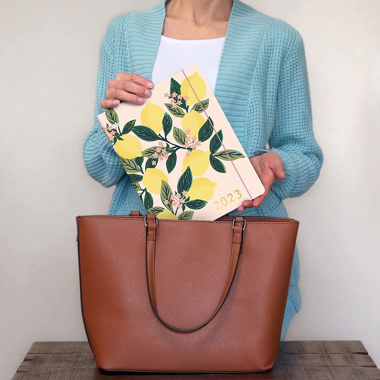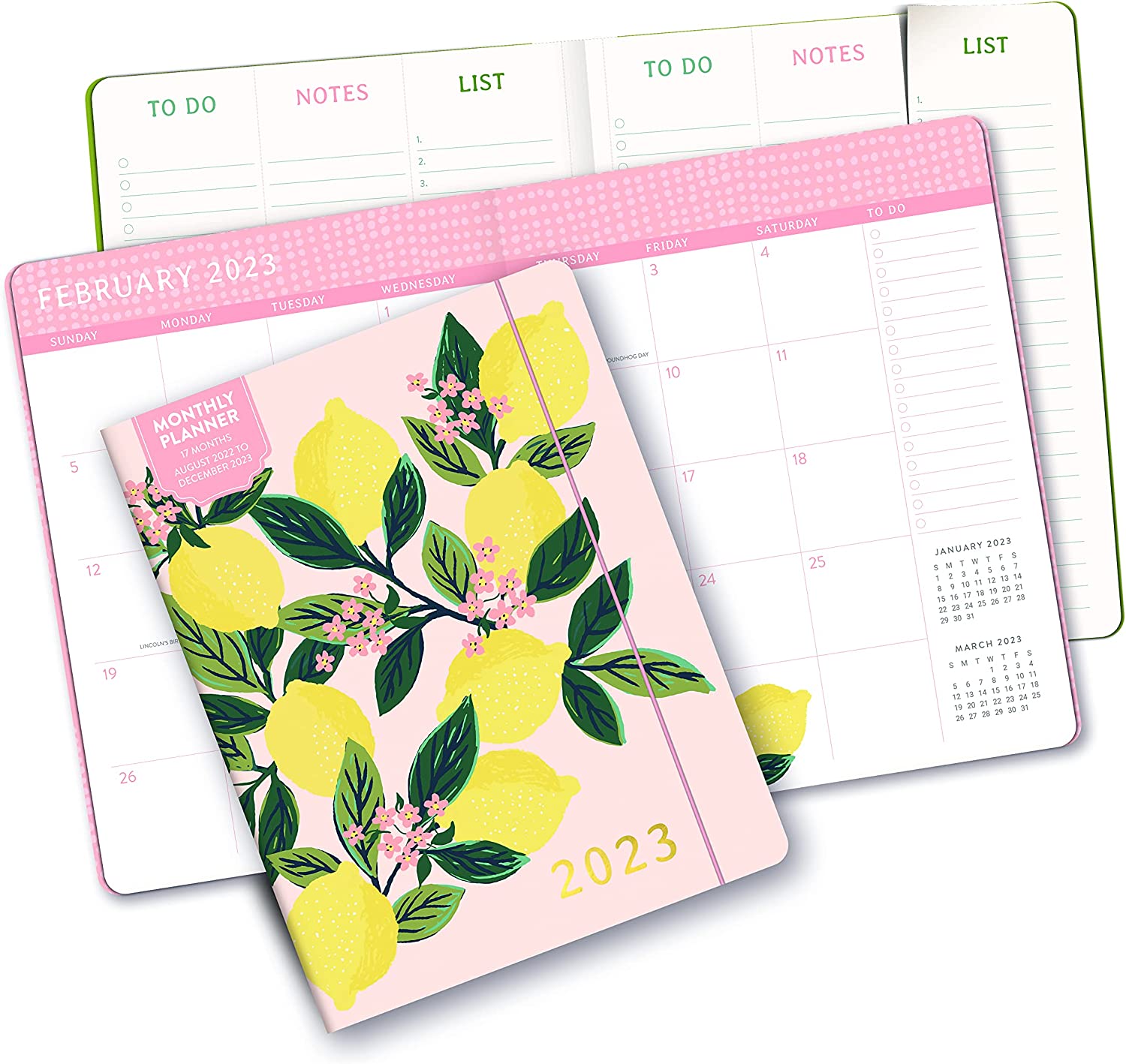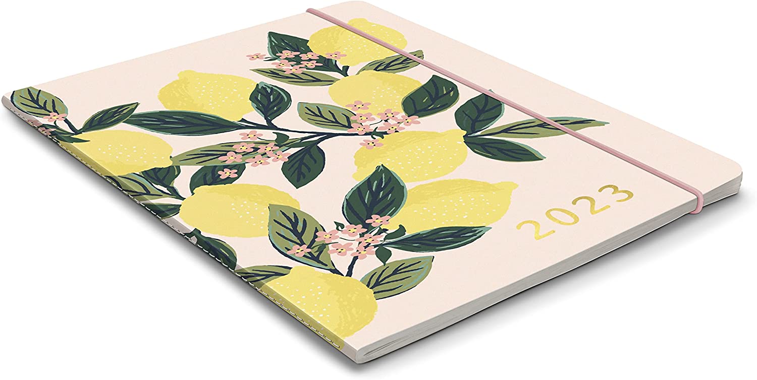 Orange Circle Studio Just Right 2022-2023 Monthly Planner - 17-Month Organizer with Full-Color Monthly Views, Storage Pocket & Elastic Closure - Lemon Tree