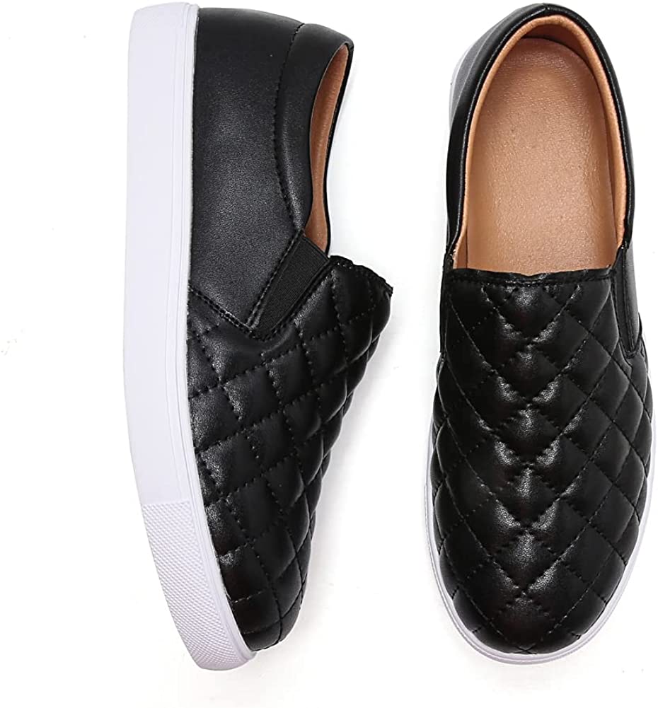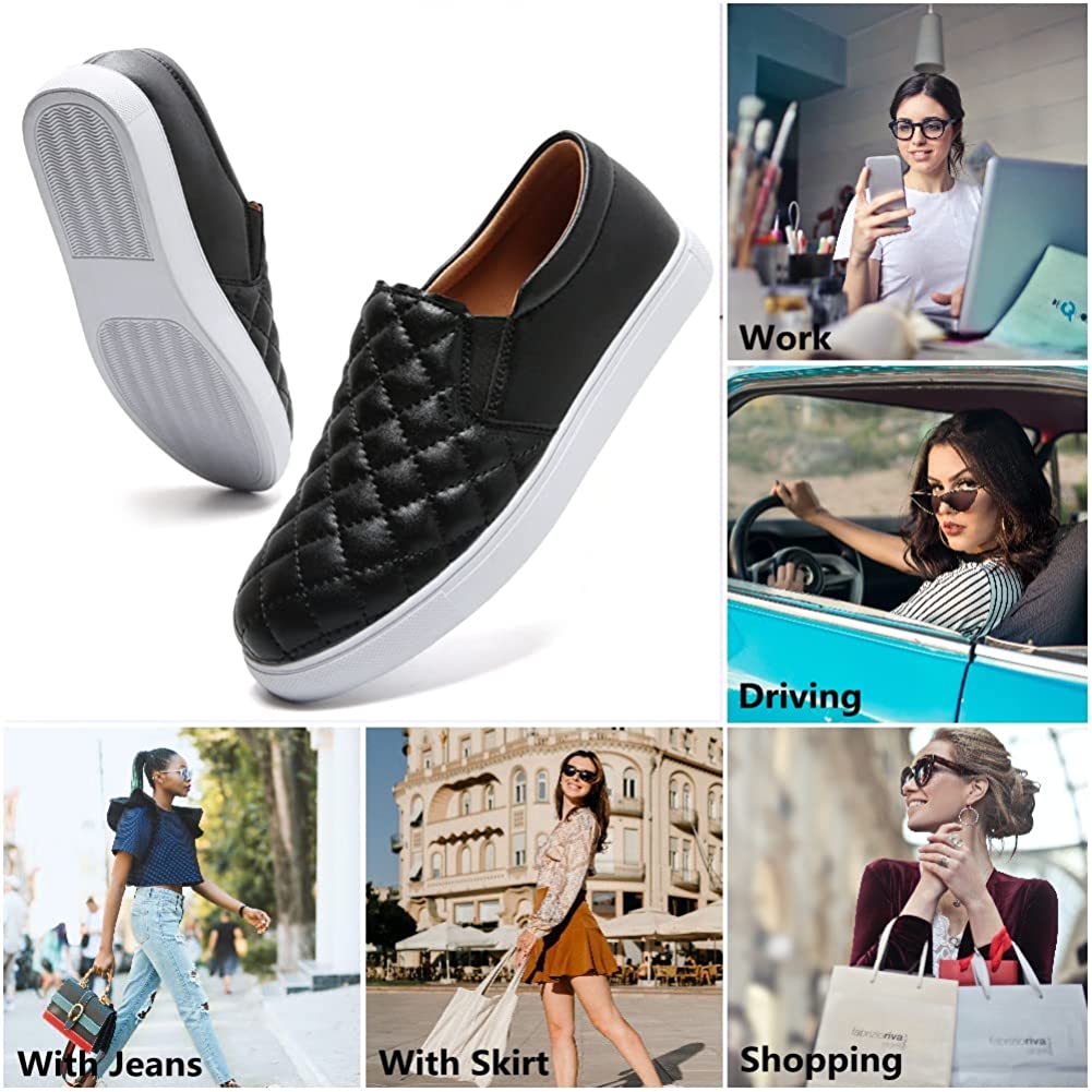 • [PREMIER MATERIALS]: Slip on shoes for women comfortable are made of leather upper with with quilted pattern decorating. Leather lining and memory foam insole. Lightweight and non-slip rubber sole.