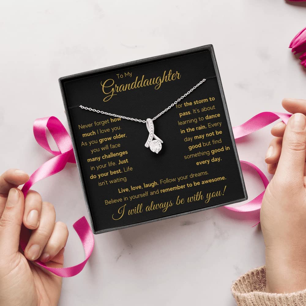 Granddaughter Necklace Gifts From Grandma Grandmother or Grandpa Grandfather To My Granddaughter Graduation Birthday Pendant Jewelry with Message Card and Gift Box