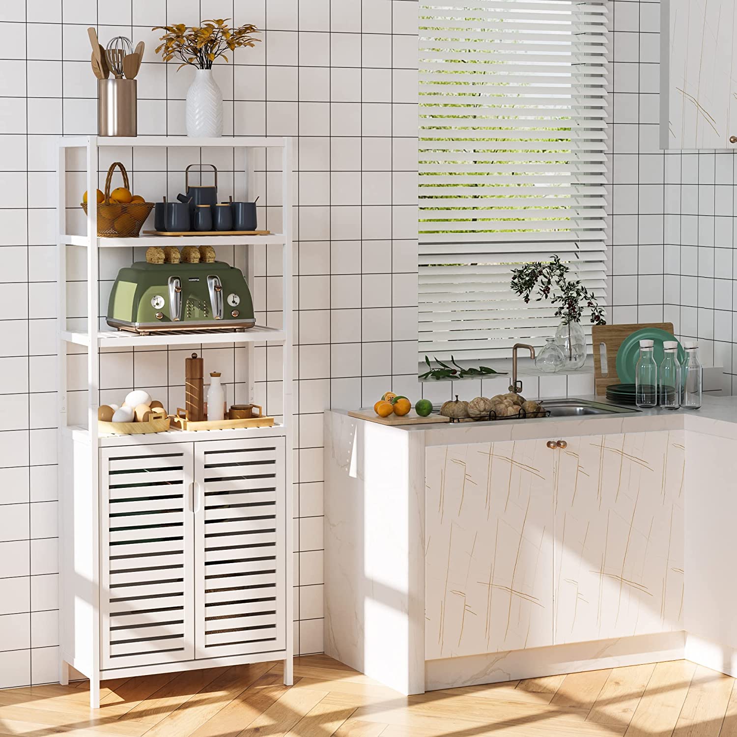 MULTIFUNCTIONAL APPLICATIONS: This bamboo storage cabinet can be used not only as a bathroom storage cabinet for towels and toiletries, but also can be served as accent furniture in living room Kitchen, such as a bookshelf, kitchen storage cabinet