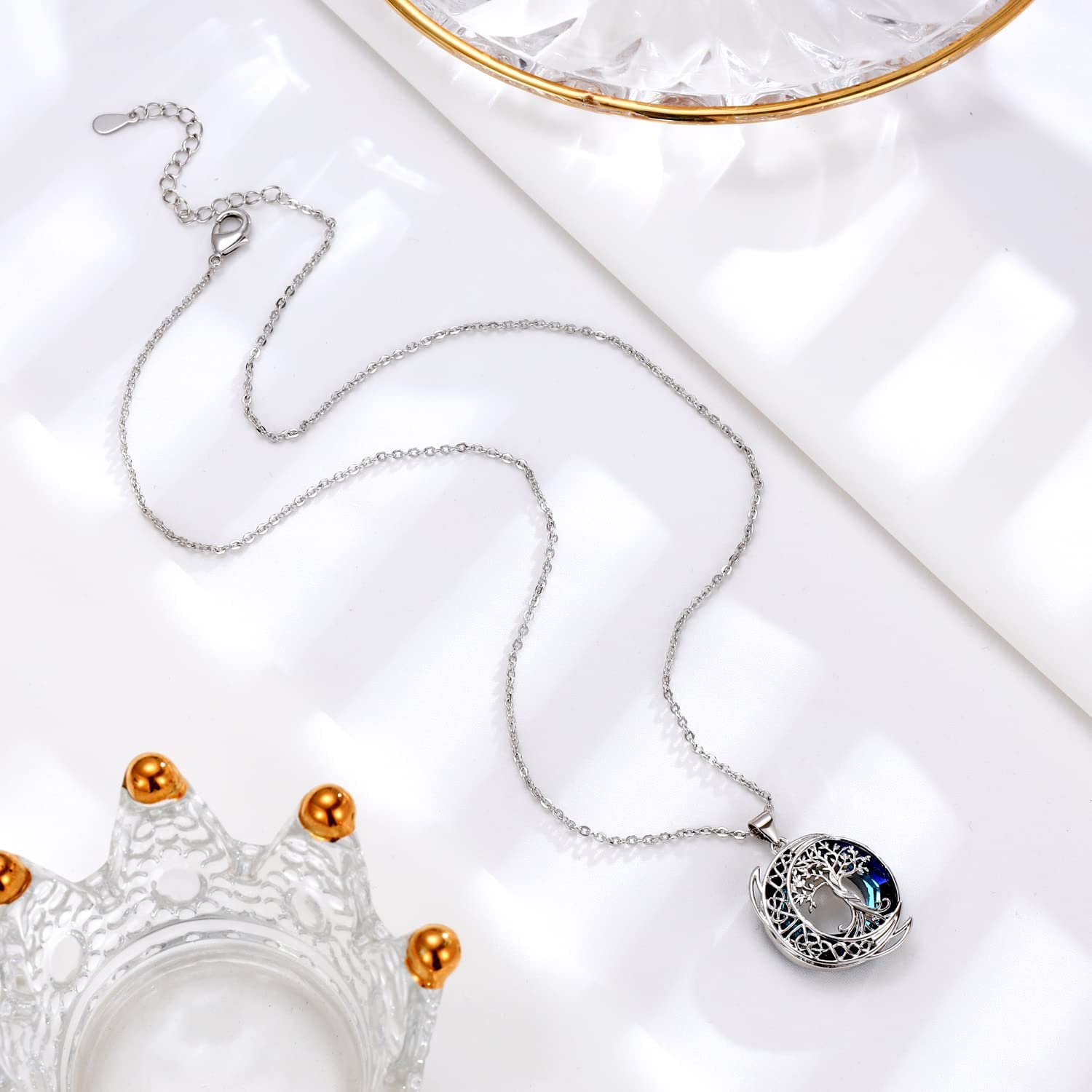 Kattepote Moon Tree of Life Necklace S925 Sterling Silver Crystal Tree of Life Pendant Necklace Celtic Knot Full Moon Tree of Life Women's Jewellery Gift