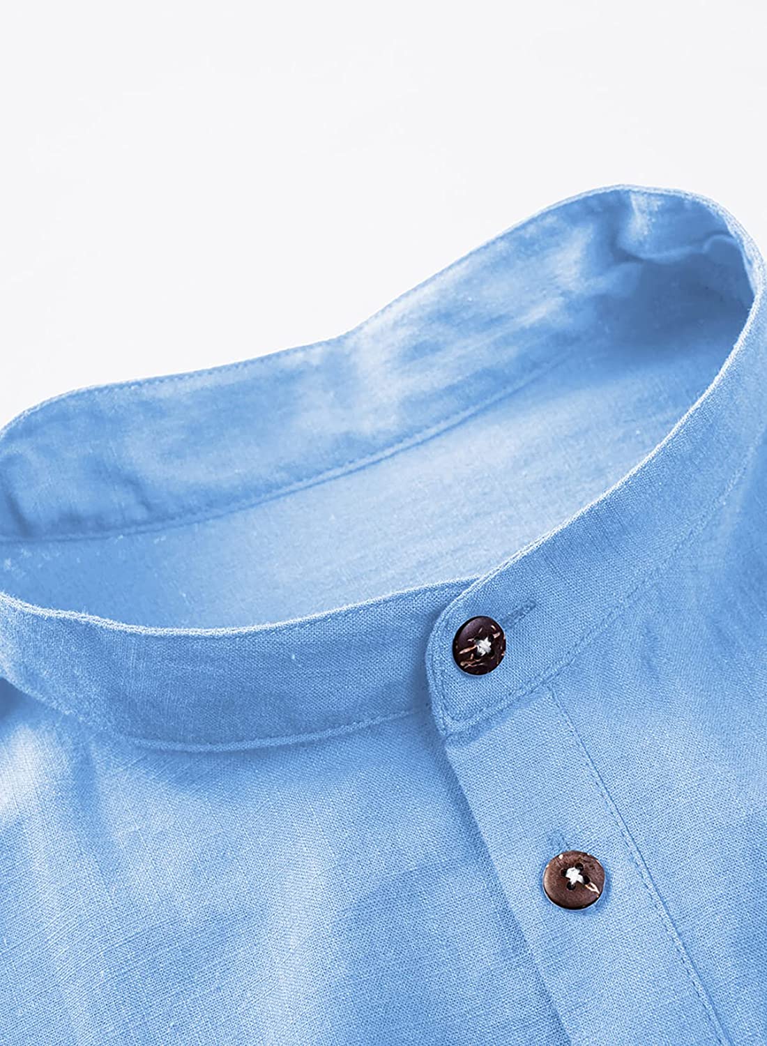 Fashion Design: Casual henley collar shirts for men,band collar, in a casual stylish, it has a button at the cuffs so you can adjust the length of the sleeves flexibly. Usually white shirt and blue shirt is the choice of most people,it is summer's color.