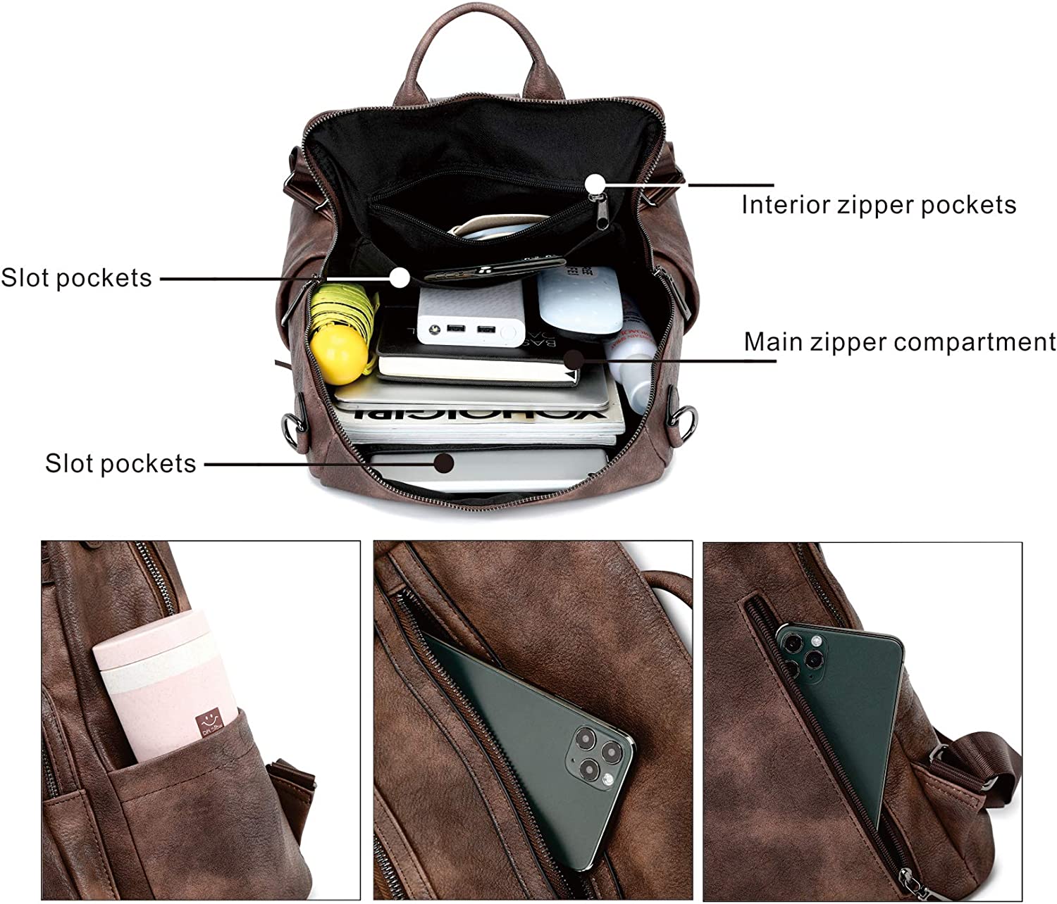【Construction & Large Capacity】This backpack purse for women adopts 1 inner zipper pocket, 2 inner slip pockets, 2 front zipper pockets, 2 side pockets and 1 rear zipper pocket, deep pockets and back anti-theft design increase the security of personal items. Multiple pockets can keep your things well organized.