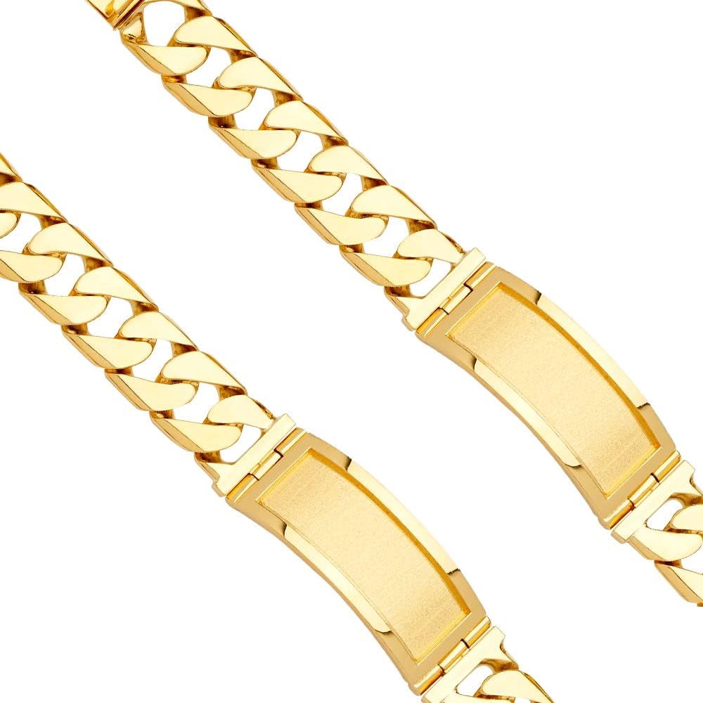 14KY Solid Link ID Bracelet - 9" | Gold Chain Bracelet for Men and Women | Solid Gold Bracelets for Womens Mens Girls Boys 14k Real | Birthday Valentines Gifts For Adults | Weight 107.2 | Jewelry Gift