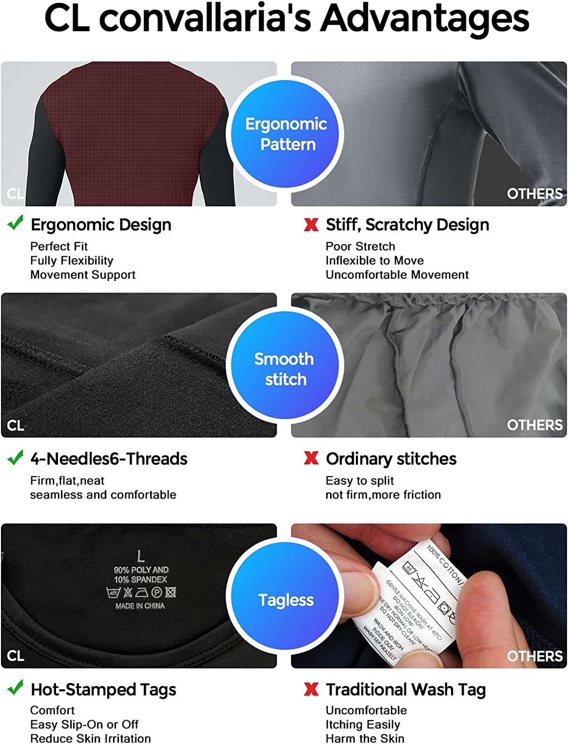 ULTRA SOFT AND SUPER WARM: CL Convallaria mens thermal underwear set is made of 90% Polyester / 10% Spandex blend fabric with high density fleece lined, the insulation material which can lock your body heat well. The super skin-touch and ultra soft long johns for men fit snug like a second skin for minimizing heat loss and keep you warm in the cold winter.