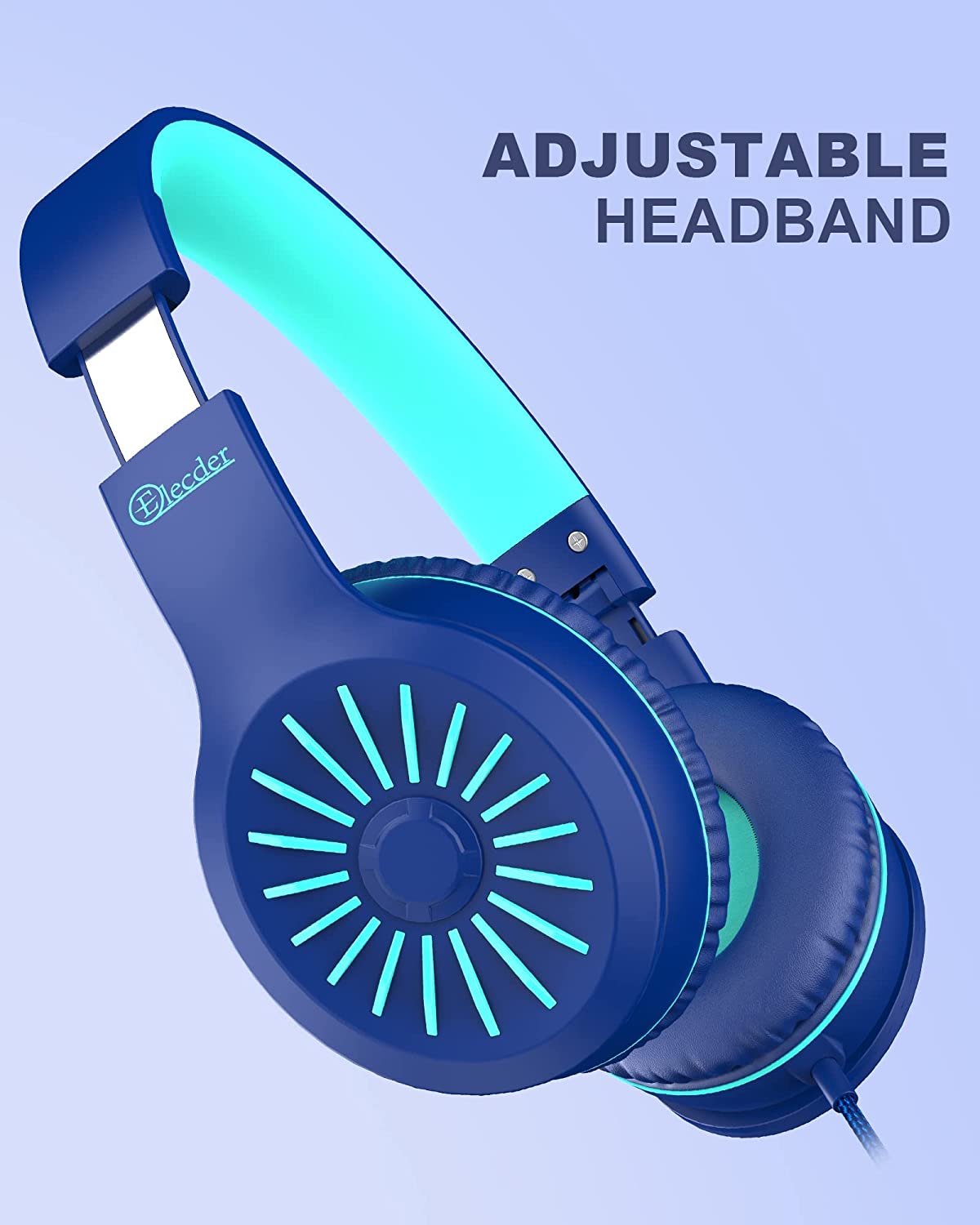 ELECDER i45 On-Ear Headphones with Microphone - Foldable Stereo Bass Headphones with No-Tangle 1.5M Cord, 3.5MM Jack, Portable Wired Headphones for School/Kids/Teens/Smartphones/Travel/Tablet - Blue